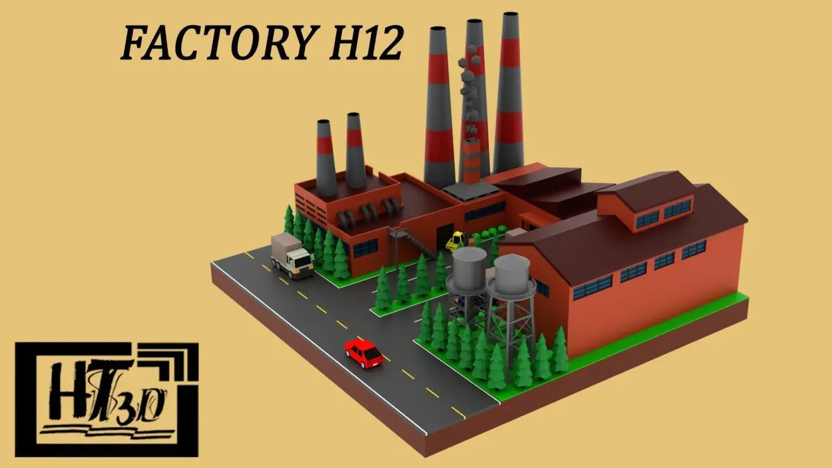 The Low poly Factory Warehouse H12 model was created with Blender version 3.6 to do.