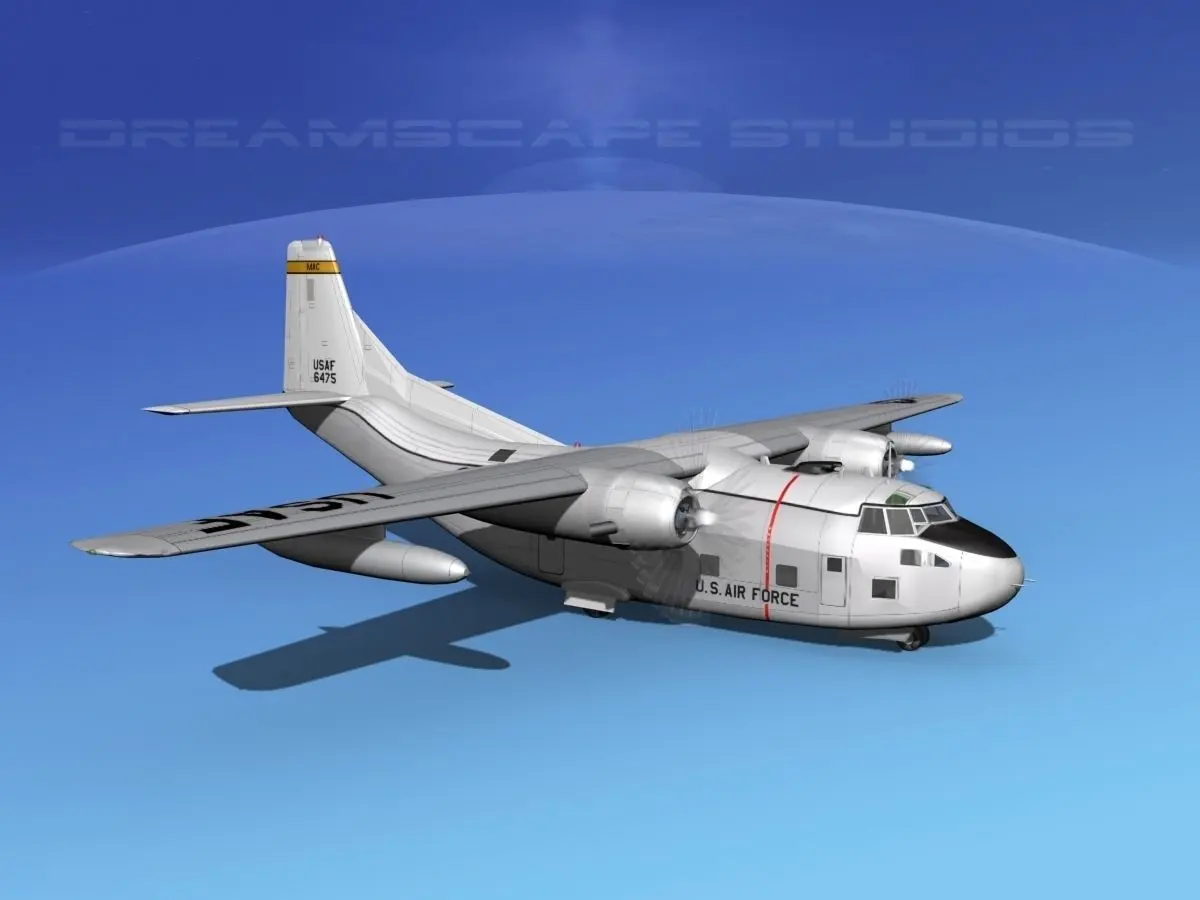 Fairchild C-123B Provider USAF 2 This model was originally built in Max 13. It is near to scale (within 3-4% of scale) and fully textured. Materials are in large high resolution formats. The model has a lot of detail on the exterior of the aircraft. There are many animateable features including the ailerons, flaps, elevators, rudder, and landing gear retraction as well as landing gear doors can be closed. The rear access ramp may also be opened. Propellers are animated at idle rpm. This model was designed for visualization use and can be used animated or not in scenes flying of sitting on ramp or tarmac. These models are realistic and sever military and civil liveries are available. Several various formats are available.