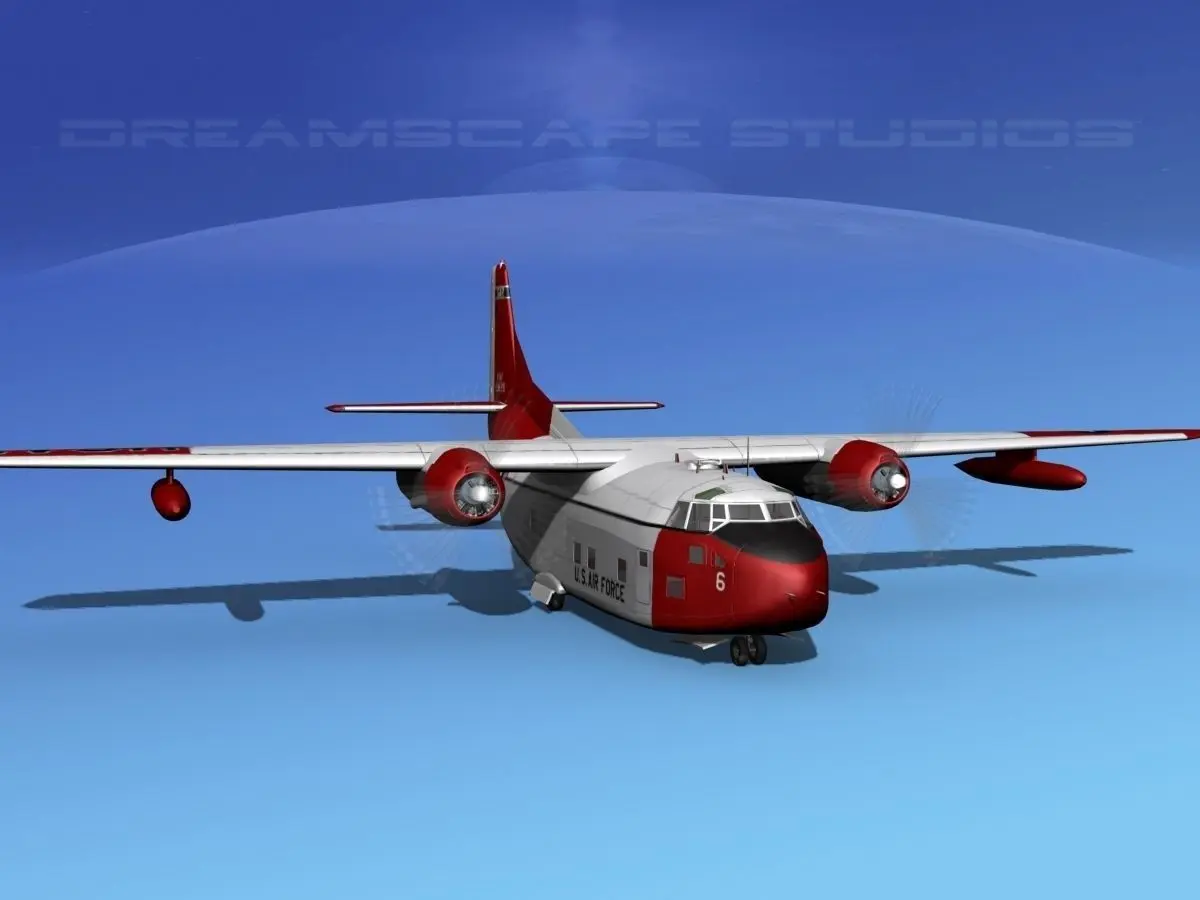 Fairchild C-123B Provider USAF Alaska This model was originally built in Max 13. It is near to scale (within 3-4% of scale) and fully textured. Materials are in large high resolution formats. The model has a lot of detail on the exterior of the aircraft. There are many animateable features including the ailerons, flaps, elevators, rudder, and landing gear retraction as well as landing gear doors can be closed. The rear access ramp may also be opened. Propellers are animated at idle rpm. This model was designed for visualization use and can be used animated or not in scenes flying of sitting on ramp or tarmac. These models are realistic and sever military and civil liveries are available. Several various formats are available.