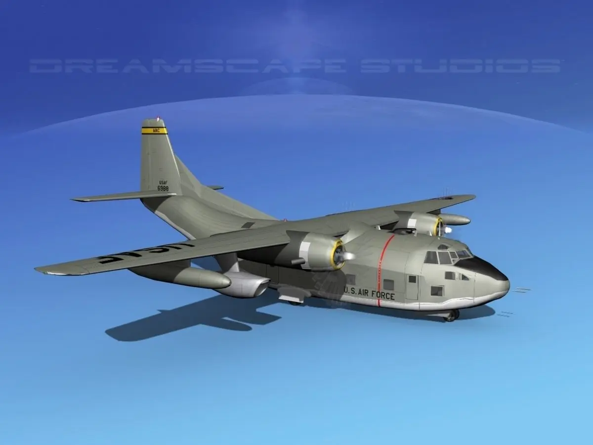 Note!Models exported at Dreamscape are not intended to be imported into software other than the format native software. We do not guarantee results when importing into non-native software!The C-123B Provider is the second of the production models based on the XC-123 with two 2300 hp R-2800-99 radial engines. It has accommodation for 61 troops, 50 stretchers, or equipment and or cargo. These aircraft served with the United States Air Force, Thai Air Force, Air National Guard Units in the US and with the Air Force Reserves. The B model was upgraded to the K model standard including two additional Jet turbine engines mounted on pylons under the wings just outboard of the reciprocating engines.