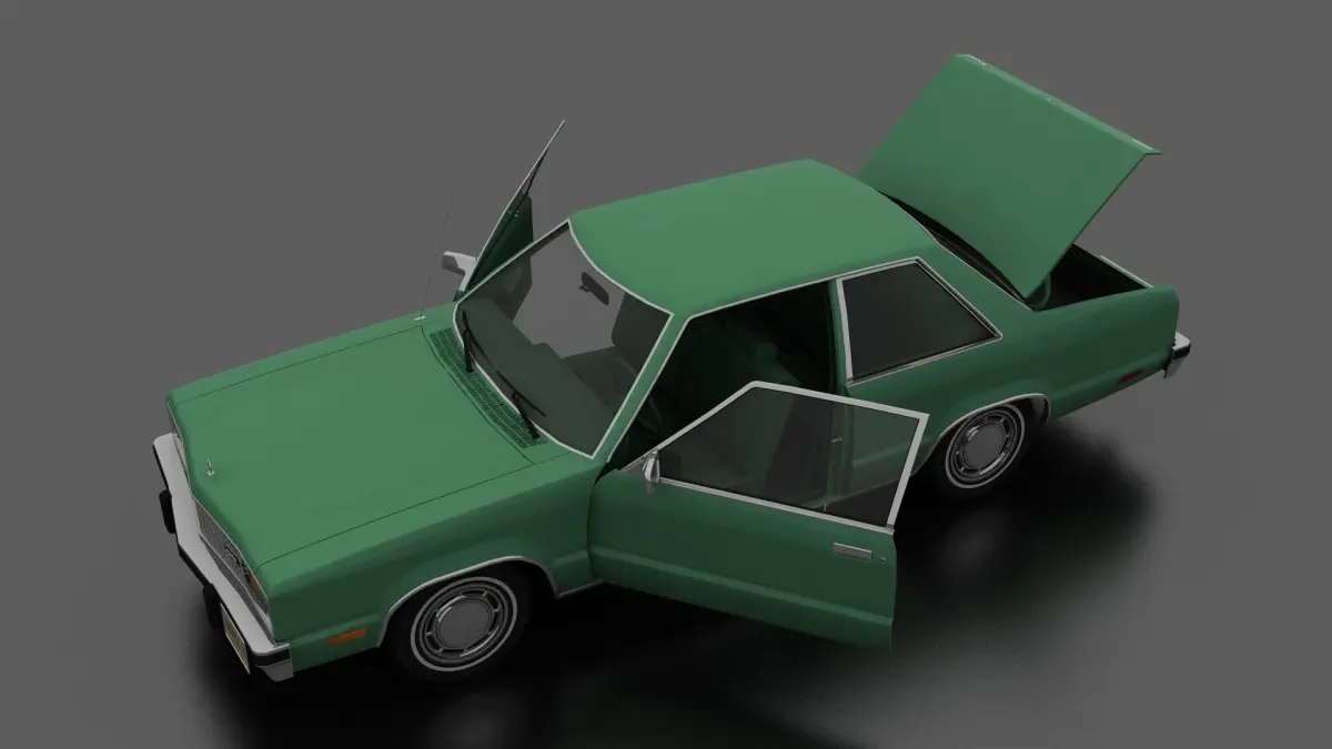 3D model of Fairmont 2dr Sedan 1978. Opening doors and boot, detailed interior. American car produced in 1978-1982
