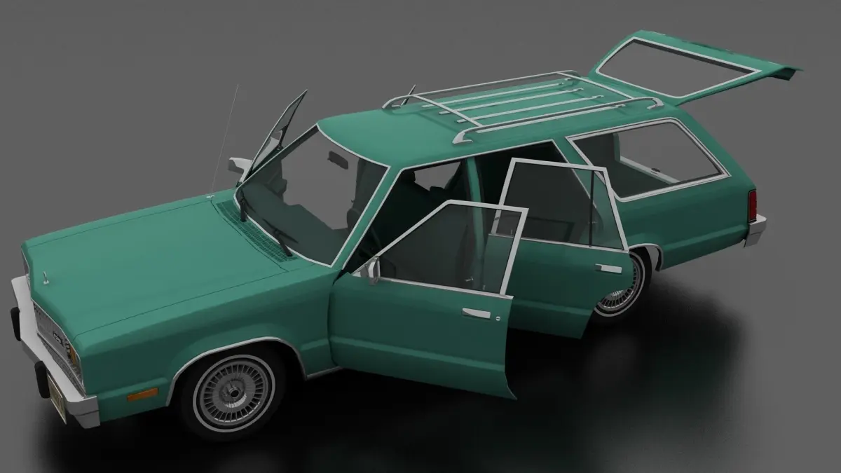 3D model of Fairmont 4dr Station Wagon 1978. Opening doors and boot, detailed interior. American car produced in 1978-1982