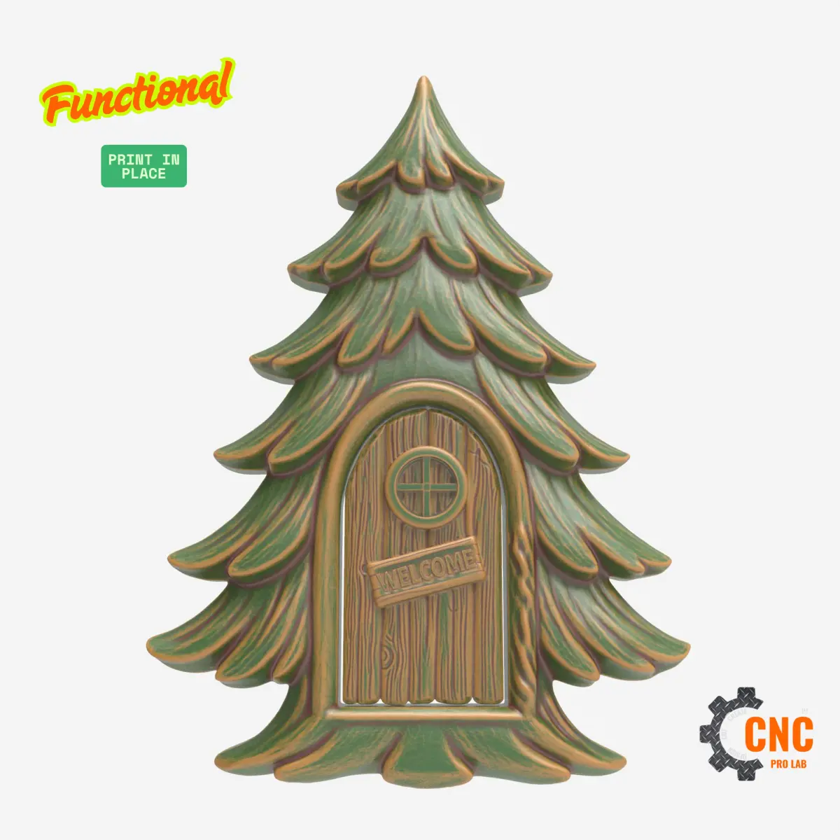 This whimsical pine tree fairy door is designed with functional geometry — the door, round window, and “welcome” sign are modeled separately so you can attach real mini hinges, knobs, or hardware. Ideal for fairy garden scenes, holiday decor, or enchanted entryways, the design prints and carves cleanly with smooth curves and high detail. A perfect project for customizing with your own touch.