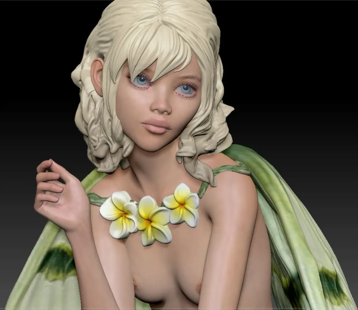 Originally designed as a night light for a girl's bedroom. The caps and legs of the mushrooms are hollow, with LEDs inside. The base is also hollow to save resin or to accommodate batteries. A translucent resin with added phosphors was used for printing.The customer has kindly agreed to post the model on the website.Everything the kit holds is in the last picture. Painted versions are also present, but for reference onlyThe set includes several hairstyle options, the model can be printed with or without clothes. All body parts are detailed