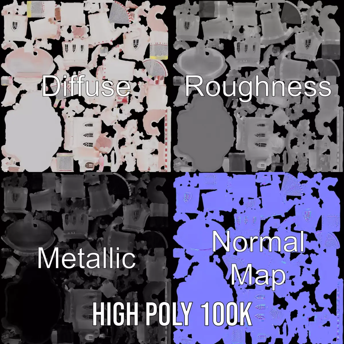This enchanting Fairy Tale Castle model pack captures the essence of a magical fortress with its elegant pink and white color palette and intricate design. Each model is crafted with three levels of detail: low-poly for mobile applications, middle-poly for environments, and high-poly for production rendering with software like 3ds Max, Maya, and more. Perfect for game engines like Unity and Unreal or interactive presentations. The PBR textures include Diffuse, NormalMap, and metallic components suitable for modern rendering engines. No overlapping UVs ensure precise detailing. Transform your virtual landscapes with this captivating model, ideal for fantasy scenes, storytelling, or architectural visualization. Textures are 4096*4096 in size. If you like this model, please leave a comment and like!