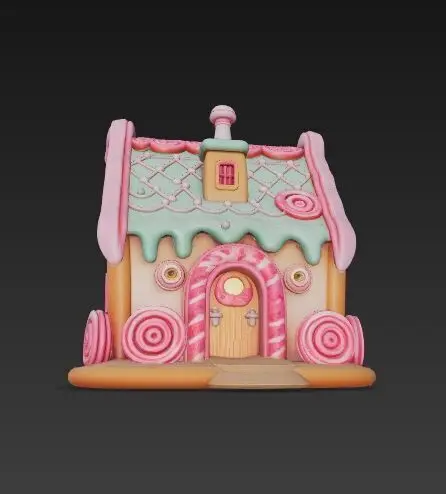 This second fairytale-style candy house brings Hansel and Gretel’s magic to life with its icing roof effects, colorful lollipops, and candy cane-framed windows and doors. Its pastel color palette and cute textures make it a wonderful collectible for kids and fantasy fans alike. Perfect for children’s rooms, Christmas-themed dioramas, or sweet shop décor. Multi-filament printing is highly recommended, or you can paint it beautifully after a single-color print.