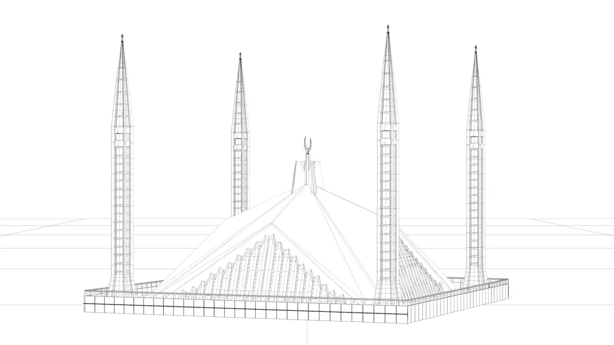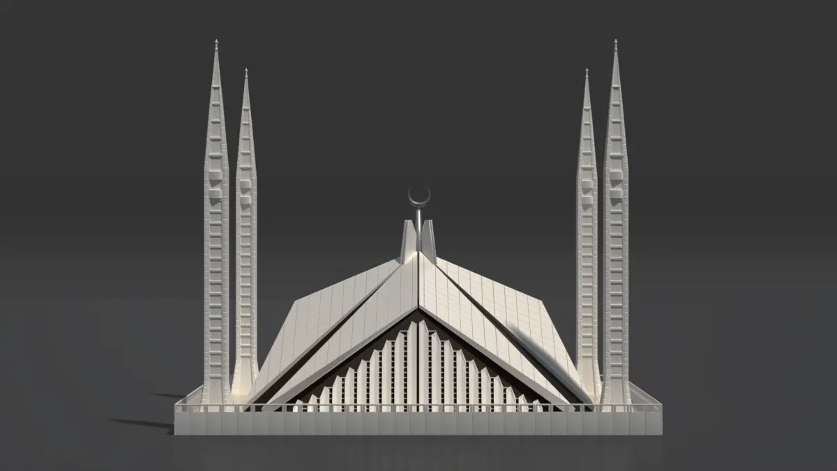 Faisal Mosque in Islamabad, Pakistan, stands as a landmark of modern Islamic architecture. Renowned for its unique tent-like design and soaring minarets, the mosque blends contemporary aesthetics with traditional spiritual elements to create a truly iconic structure. This meticulously detailed 3D model captures its striking geometric patterns and expansive form, making it an essential asset for architectural visualization, CGI projects, and digital reconstructions on CG Traders.