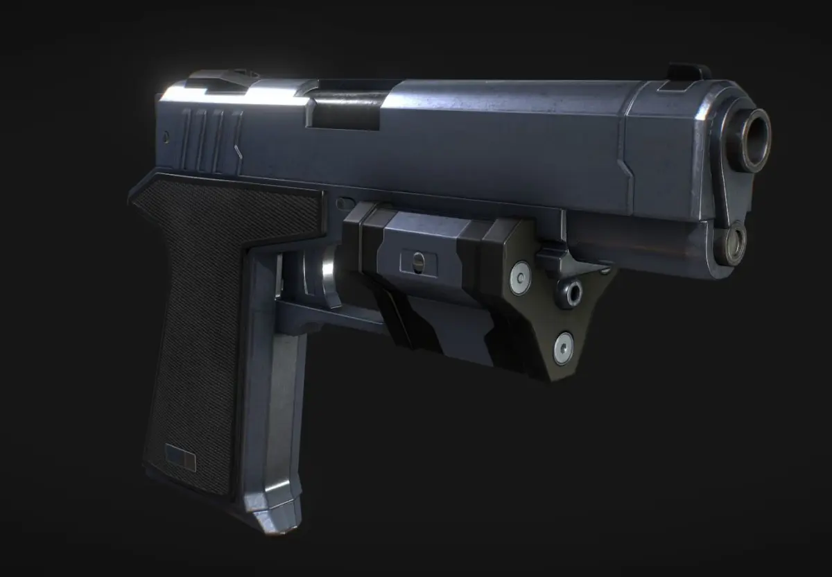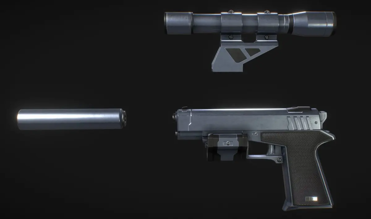 It’s my own version of the Falcon 2 weapon from Perfect Dark (2000). PBR, realtime engine ready, pieces separated properly for animation making and/or attachement removal and for achieving different combinations. The lens effect of the scope is done with the renderer so it doesn’t actually have any textures.