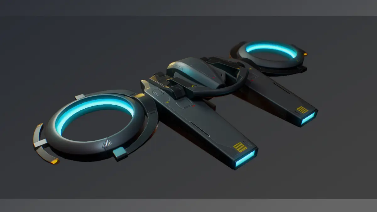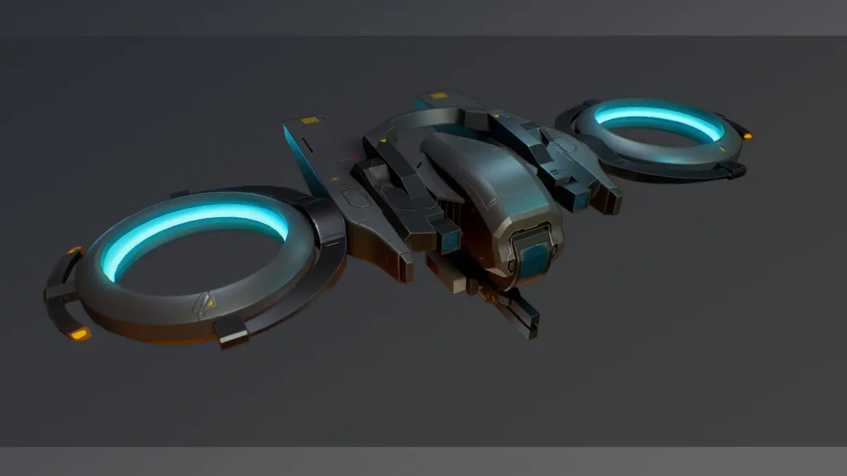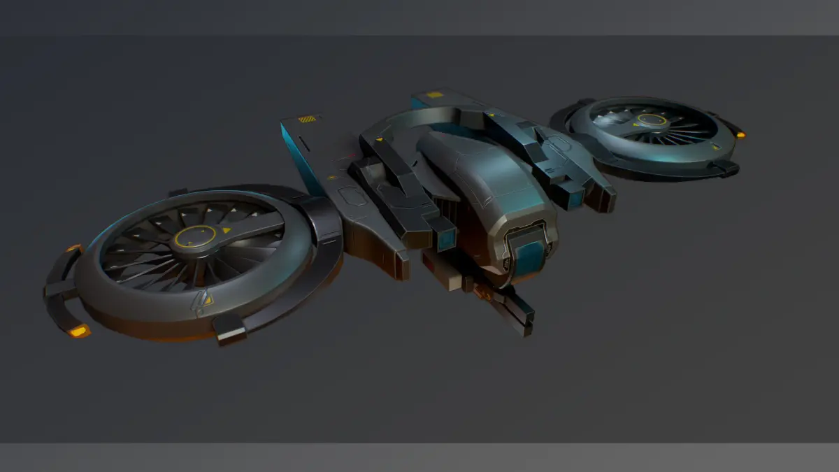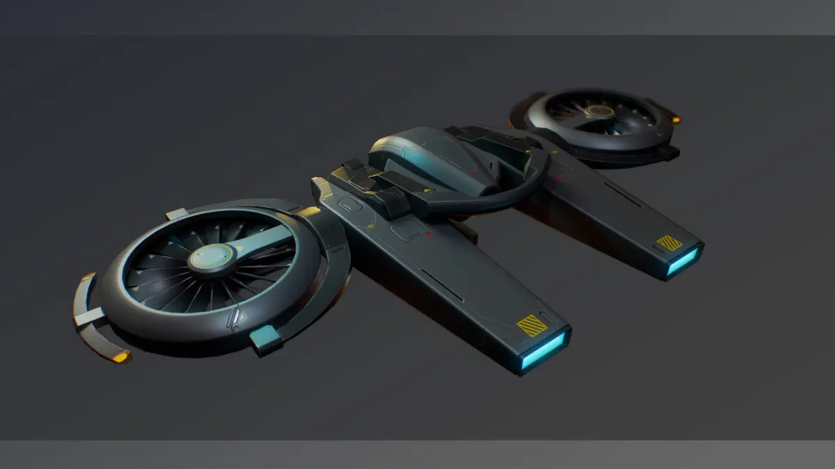 Game-ready falcon drone model. This model has separate parts with locators and joints for animate