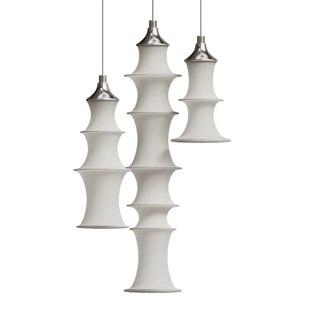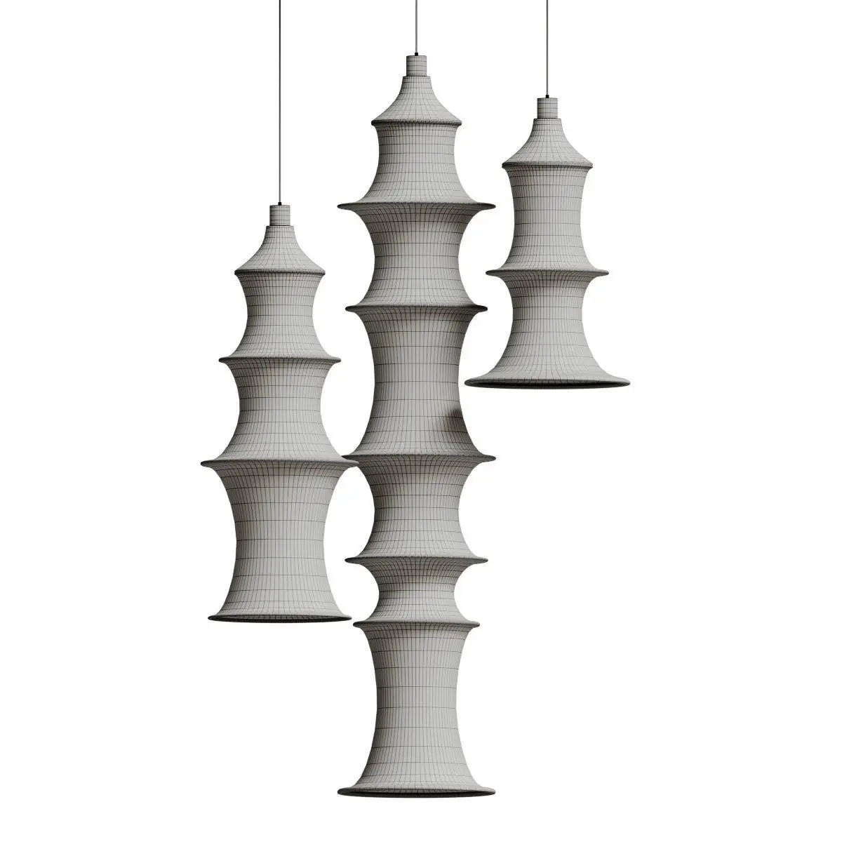 Falkland Suspension Made of tubular elastic mesh initially produced in a stocking factory, which takes form through the incorporation of some metal rings of different diameters. Linear, practical, and with spontaneous form. Thanks to its soft light it creates a totally relaxed atmosphere.