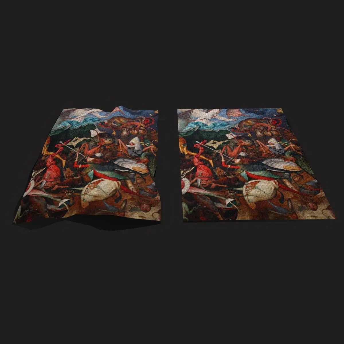 Fall of the Rebel Angels Version Two Bruegel the Elder 3D Model. PBR Texture available in 4096 x 4096 Maps include : Basecolor, Normal, Roughness, and Metallic. All Preview renders were done Marmoset Toolbag 3.08 Scaled to real world scale. Includes 2 Models 1 Material. Customer Service Guaranteed. From the Creators at Get Dead Entertainment. Please like and Rate! Follow us on FaceBook and Instagram to keep updated on all our newest models.