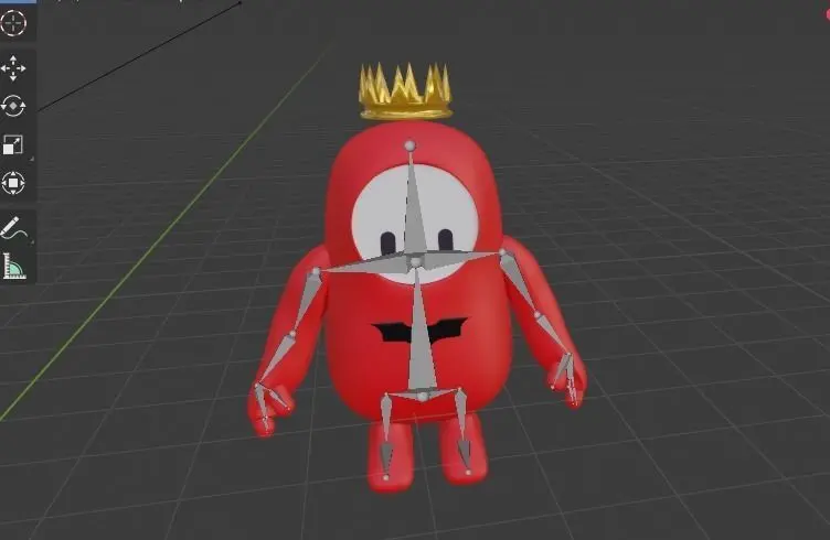 Made this cool fallguy 3d model character with bones(rigging), ready to be used for animation with a crown and a bat logoIve added armature(bones/ for rigging) on the character so the model can be animated as anyway we like...Im new to blender hope you like my work ^^ -::: Note: Only model itself with bones, crown and batlogo is included...