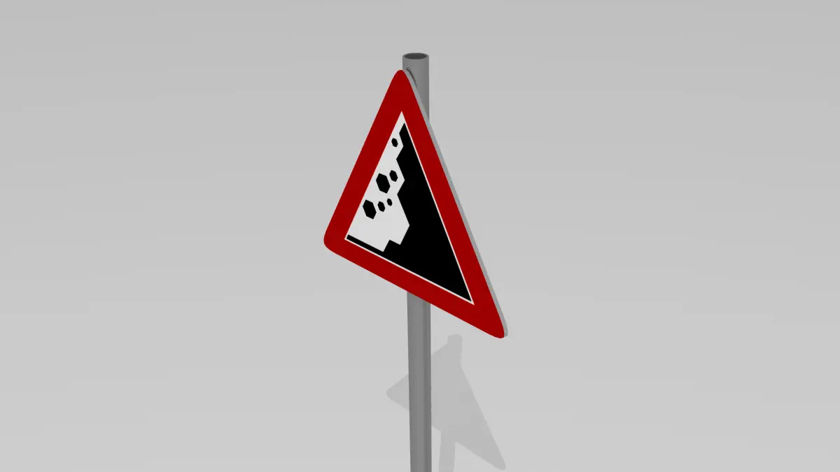 A falling rocks warning sign modeled to specs, with materials and texture applied.