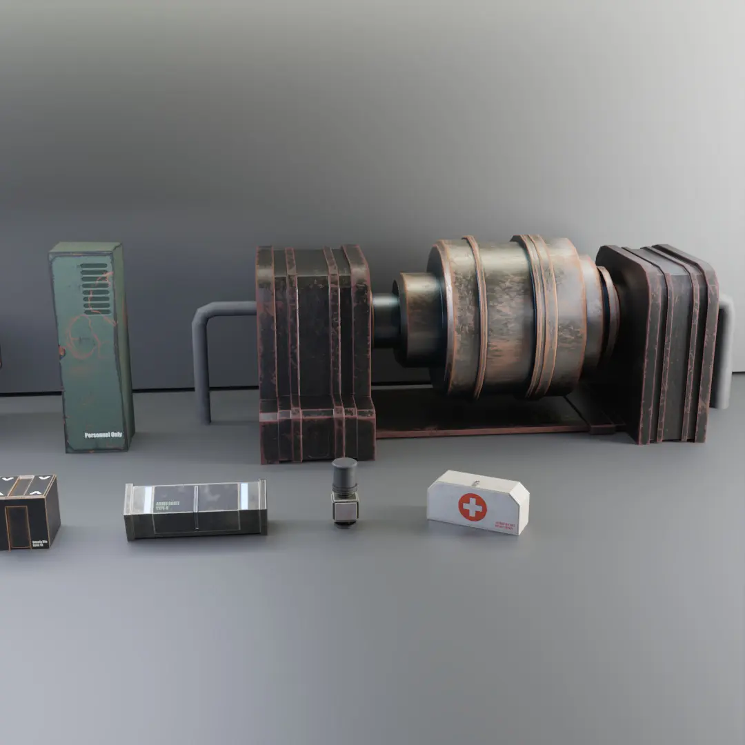 A collection of 9 Fallout-inspired sci-fi props, perfect for post-apocalyptic or dystopian environments. Includes 2 texture sets (4K PBR), clean UVs, and optimized low-poly meshes. Ideal for game engines, concept scenes, or kitbashing.