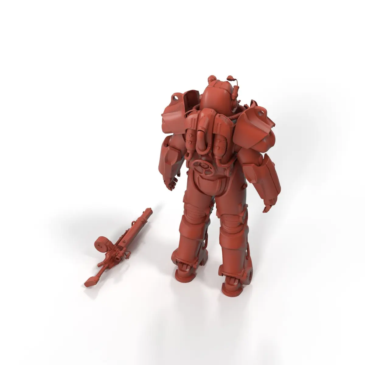 Fallout Power Armor T 60 with Rifle for 3D Print is a high-quality 3D model, ready to be used for 3D printing projects. The model's geometry is solid, allowing the forms and details to be replicated excellently in a 3D print. The product renders were created in 3Ds Max with V-Ray to demonstrate how the model may look with materials applied. The renders have no post-processing!