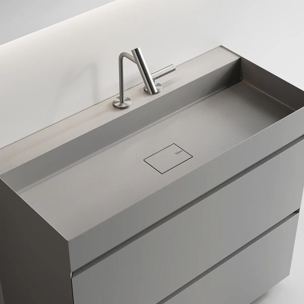 Washbasin:Collection - Quattro.ZeroType - Rectangular Ceramilux washbasinMaterials - CeramiluxDesigners - MetricaDimensions: Width - 1000mm Depth - 450mm Height - 120mm
