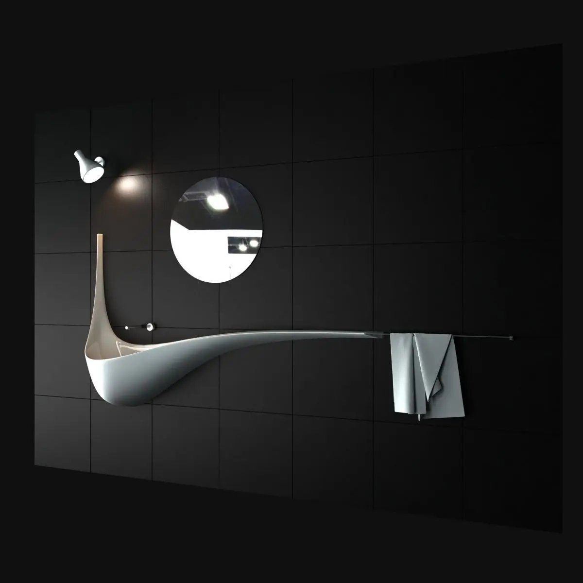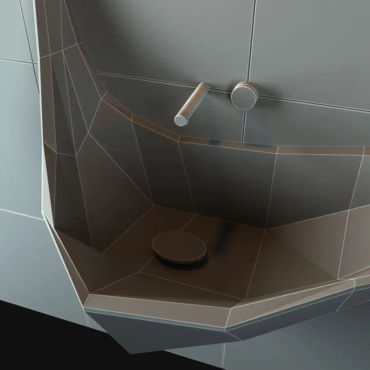 This is high poly washbasin. Stack not collapsed. Textures included. Set consist of: washbasin, tap, towel, lamp, mirror and tiles.