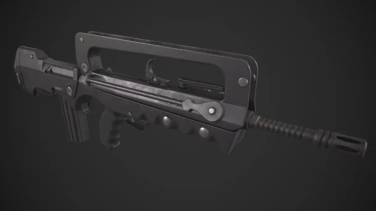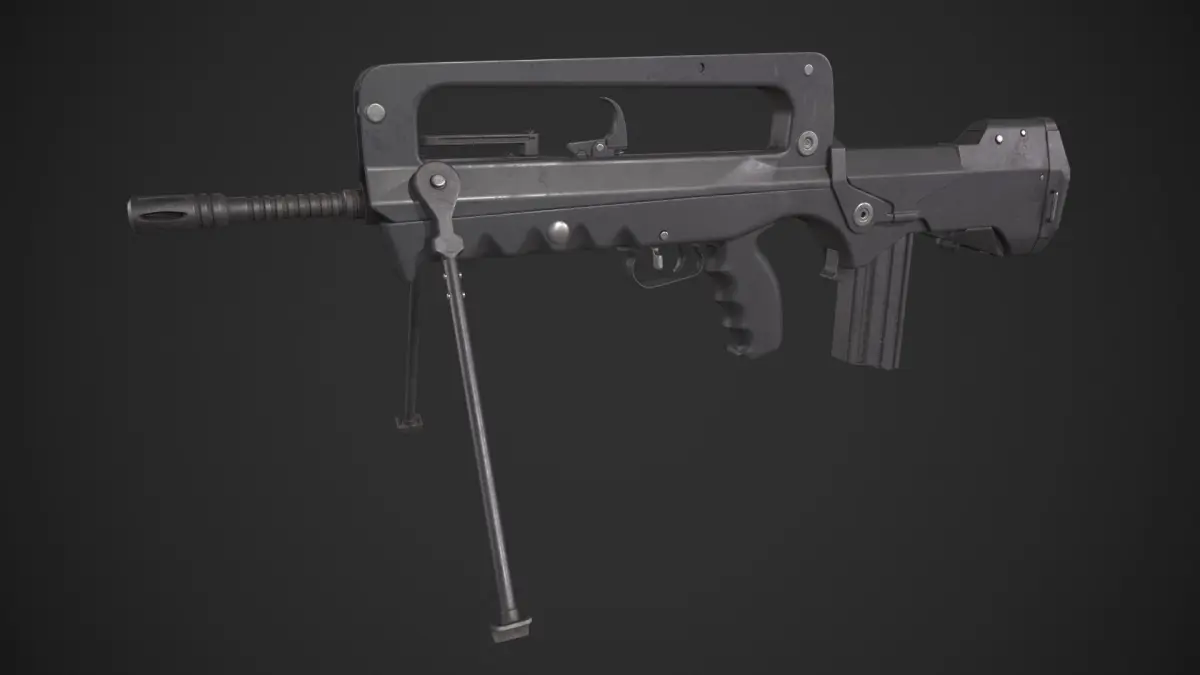 Game-ready Famas F1 asset, with PBR textures included in the files. This has 13529 polys (25456 tris) and 13828 vertices. Two versions of the bipod are in the 3d files - one opened and one folded.