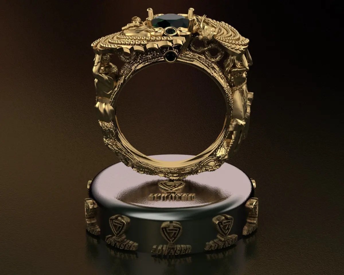 family ringThis custom design is a symbol of family solidarity.The two angels above the ring are the children of the family, which are a symbol of purity and the guardians of the jewel of love of this family. On the side of the ring, you can see the father and mother of this family, who are the pillars of this family, the guardians and protectors of their children.