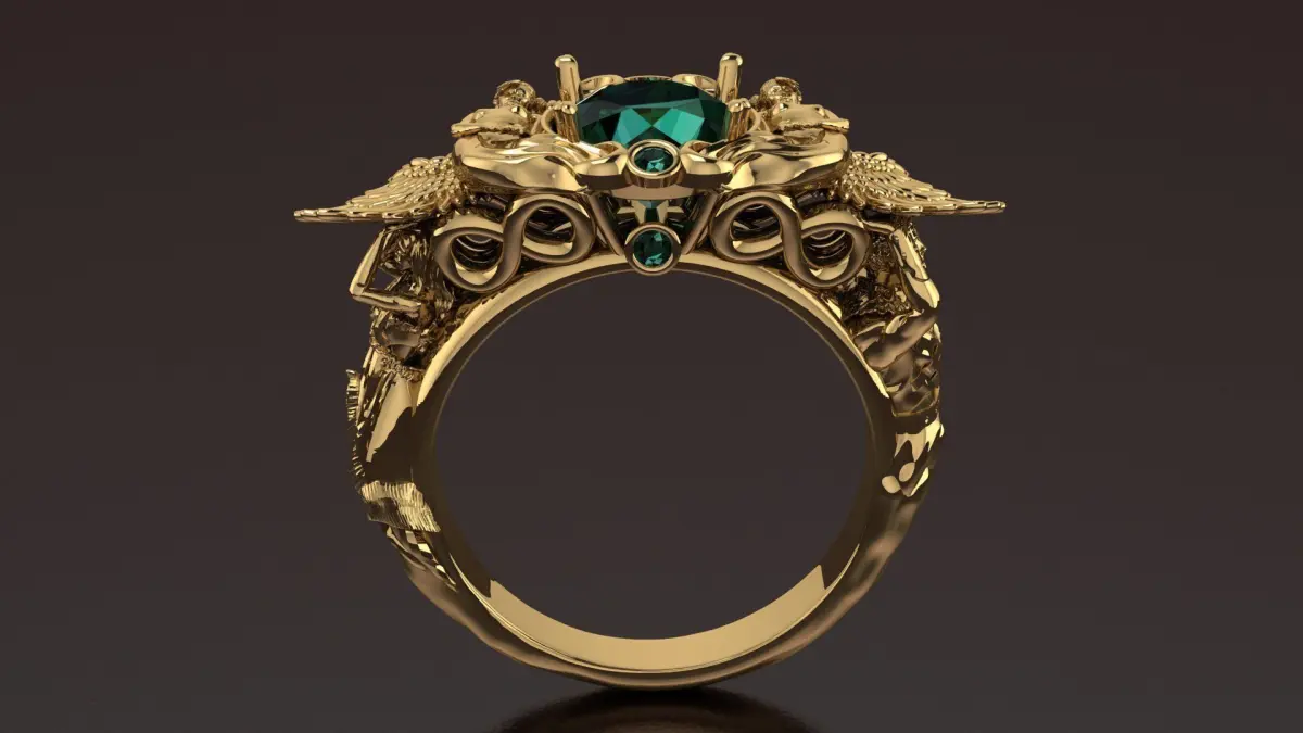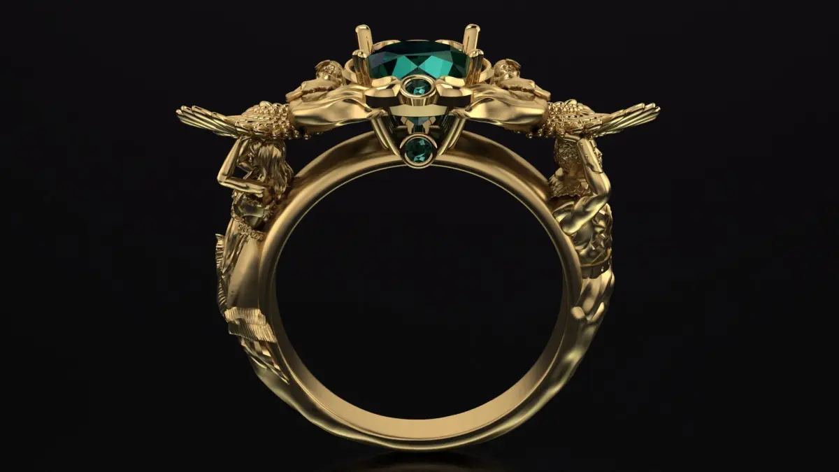 family ringThis custom design is a symbol of family solidarity.The two angels above the ring are the children of the family, which are a symbol of purity and the guardians of the jewel of love of this family. On the side of the ring, you can see the father and mother of this family, who are the pillars of this family, the guardians and protectors of their children.