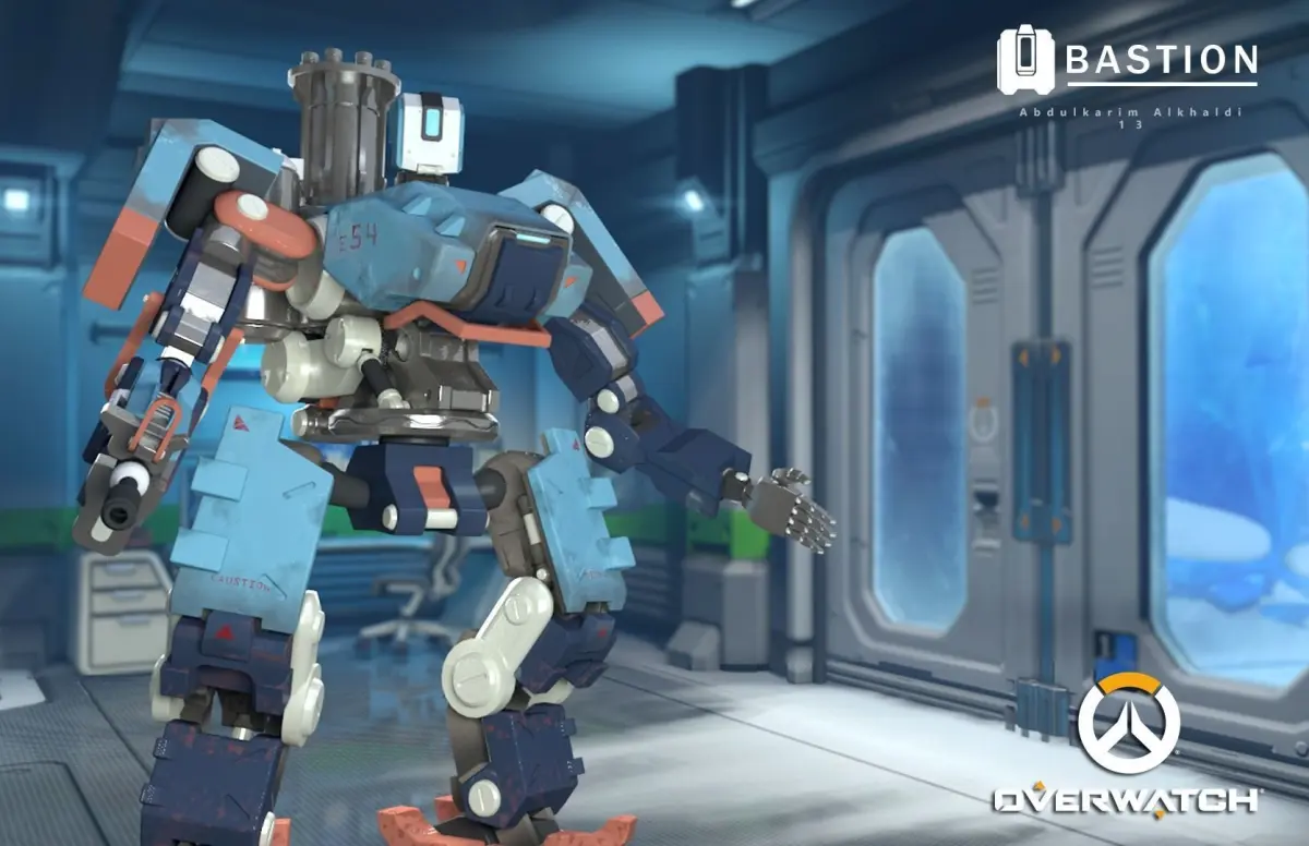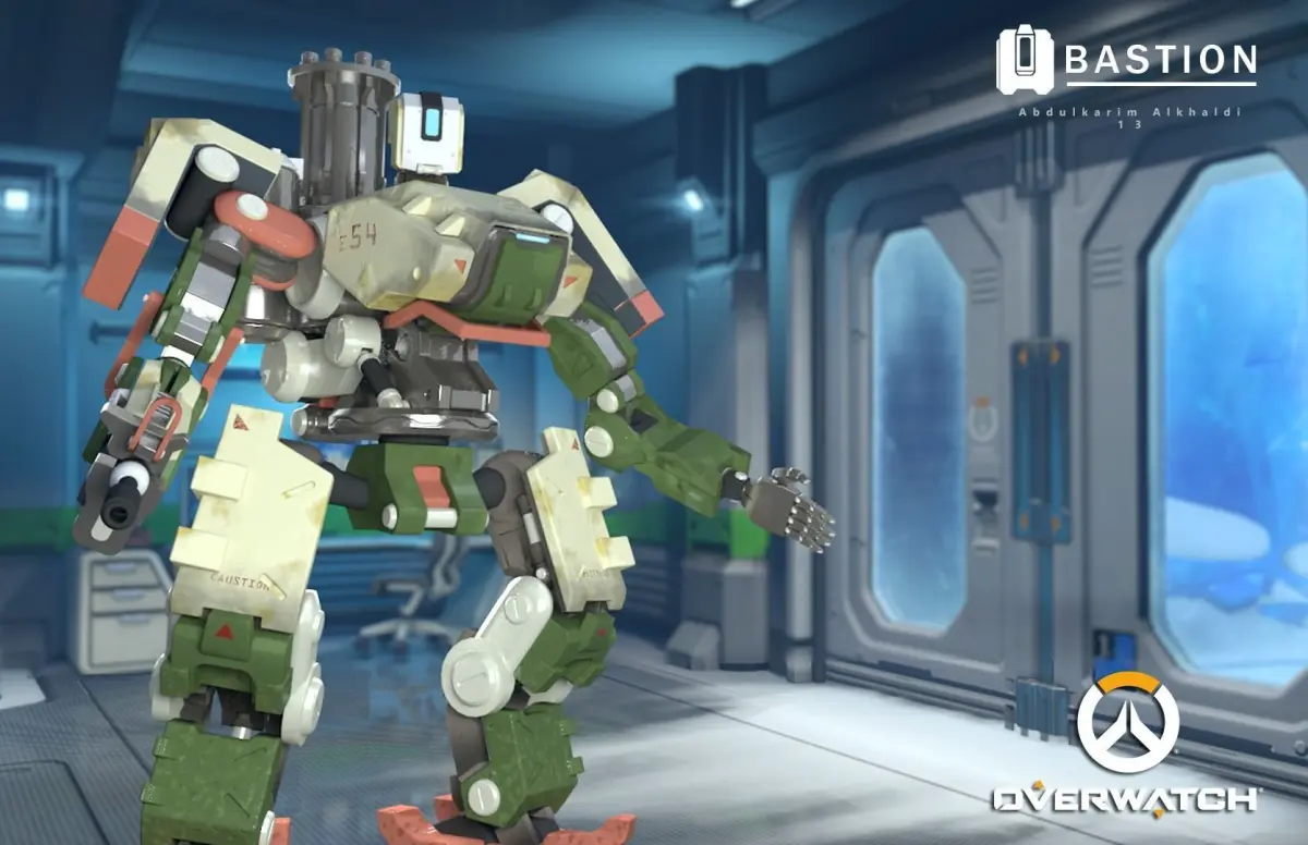 my fan design for overwatch character (bastion)3d modeling in cinema 4dtexturing and render in cinema 4d