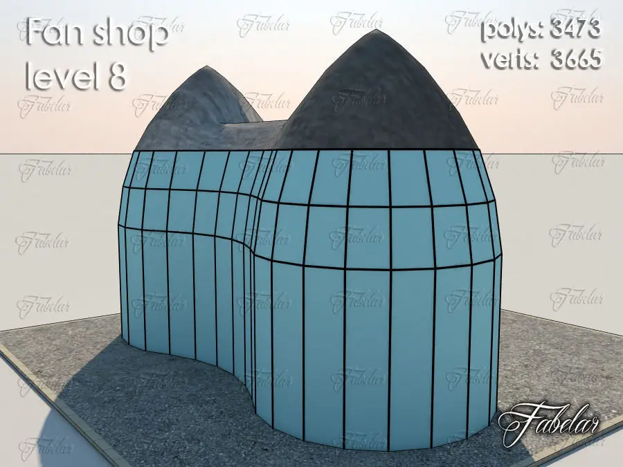 FAN SHOP level 8 lowpoly 3D model. Vray, scanline, multiple import formats.