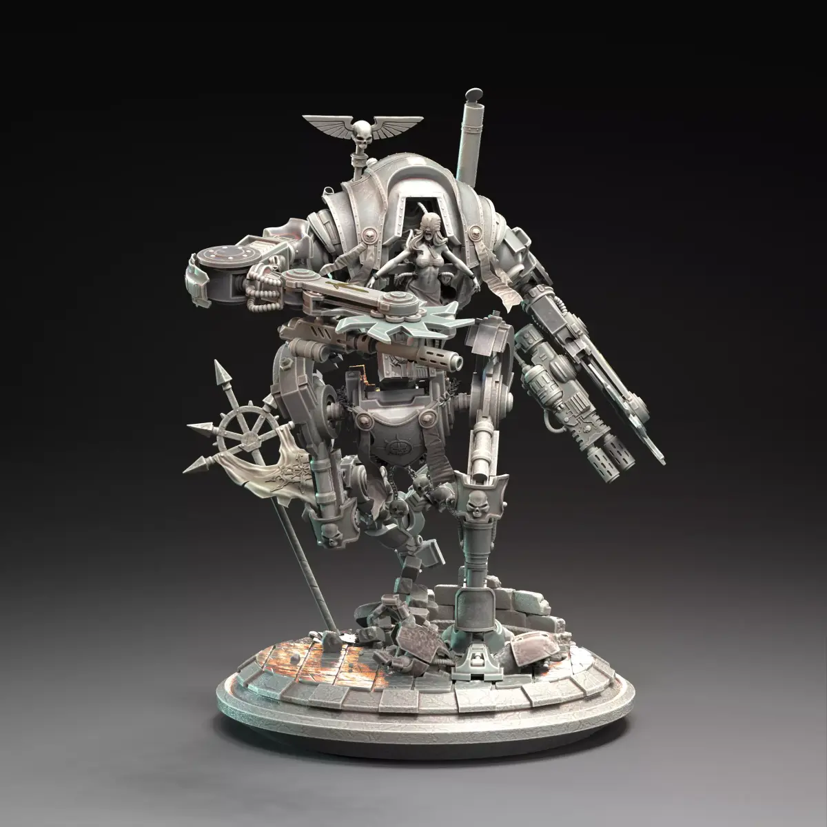 Model sculpted in Zbrush, optimized for 3D printing, broken down for easy printing, painting, and post-processing, 30 cm high on the y-axis.
