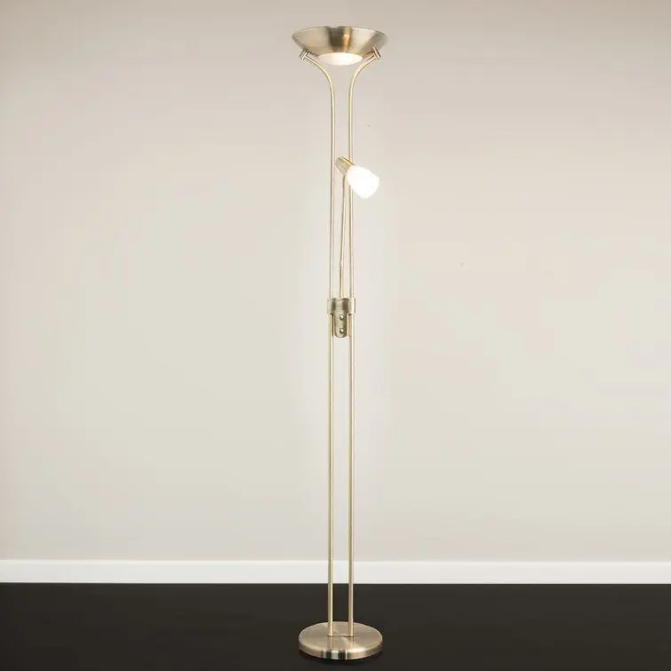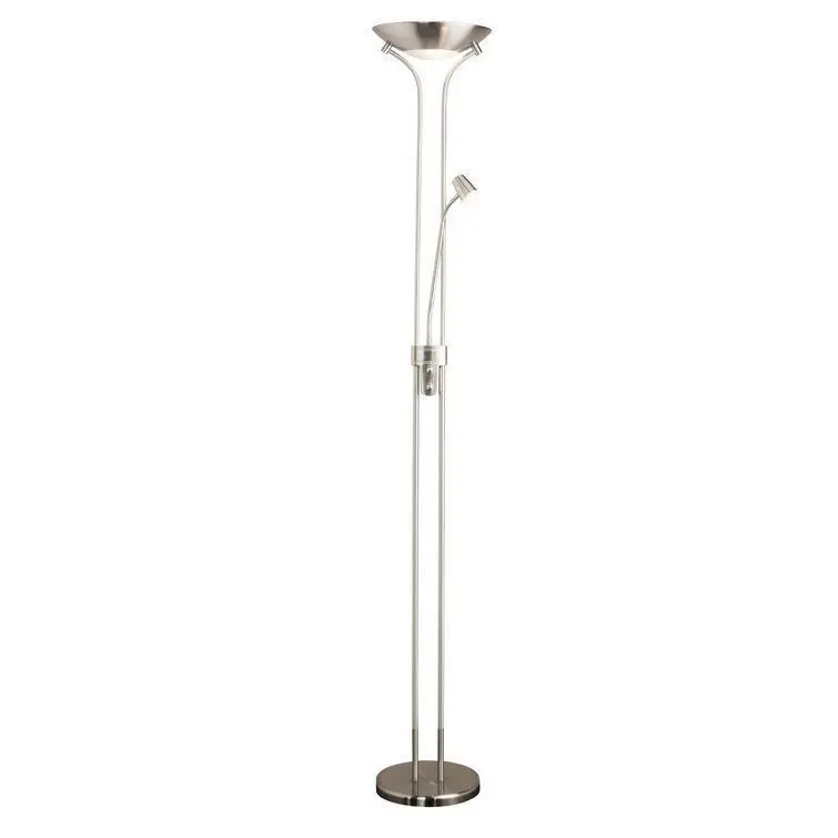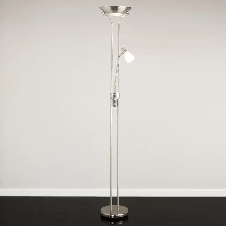 - Streamlined and contemporary in style, this standing lamp is a functional choice for a living space. It stands on a sturdy metal base and includes an up-lighter and an adjustable reading light, making it a great choice for positioning next to a sofa, armchair, or wherever a reading or task light is needed. This energy-efficient lighting solution includes LED bulbs.