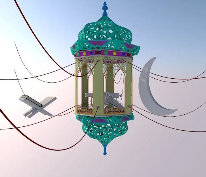 High quality 3d model of (Fanoos) which sign of Islamic month (Ramadan).with 3 accessories (quran & holder , Ramadan cannon , moon )