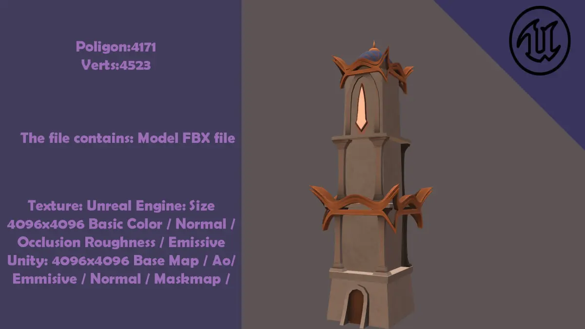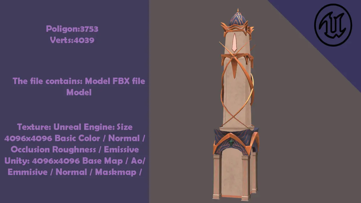 Models are modeled in 3dsmax 2021 programFBX printouts are 2014/2015 versionNames and Polygon Numbers Included in the Package:Big Tower:Face: 2498Trsi: 2498Edges: 3775Vertes: 1331Column:Faces: 500Tris: 796Verts: 458Dome:Faces: 7496Tris: 7496Verts: 3854Entrance Door 1:Faces: 2172Verts: 1100Entrance Door 2:Faces: 7976Verts: 4048Moon Build:Faces: 5427Verts: 5178Pool:Faces: 7624Verts: 4066House Build:Faces: 7624Verts: 4066Small Build:Faces: 5079Verts: 6114Small Entrance Door:Faces: 796Verts: 840Stairs:Faces: 1496Verts: 764Star TOwer and Tree:Faces: 11597Verts: 6045Street Lamp:Faces: 2582Verts: 1303Tower 2:Faces: 11597Verts: 6045Tower 3:Faces: 4171Verts: 4523Wall and Column Set:Faces: 5936Verts: 3088