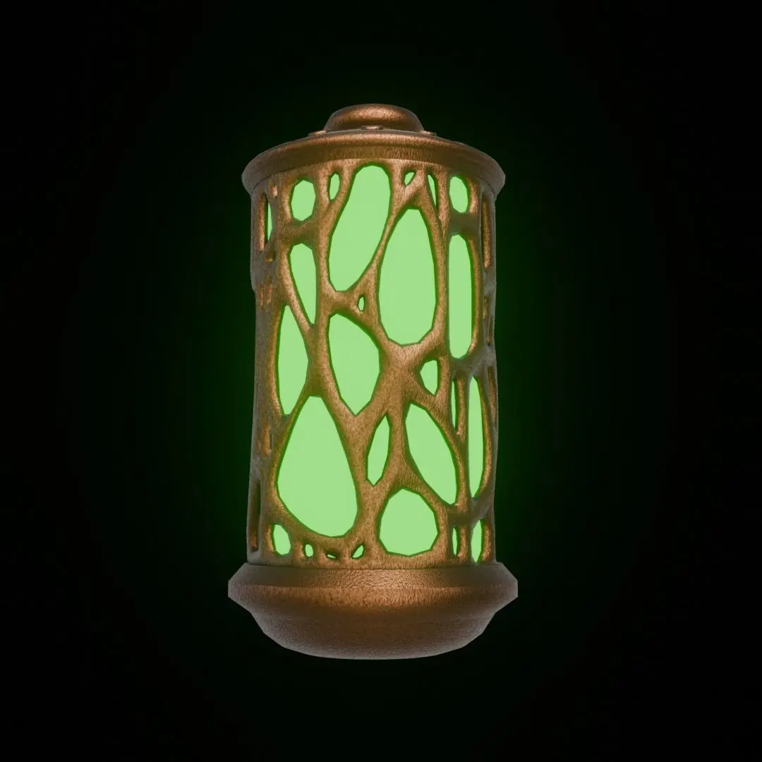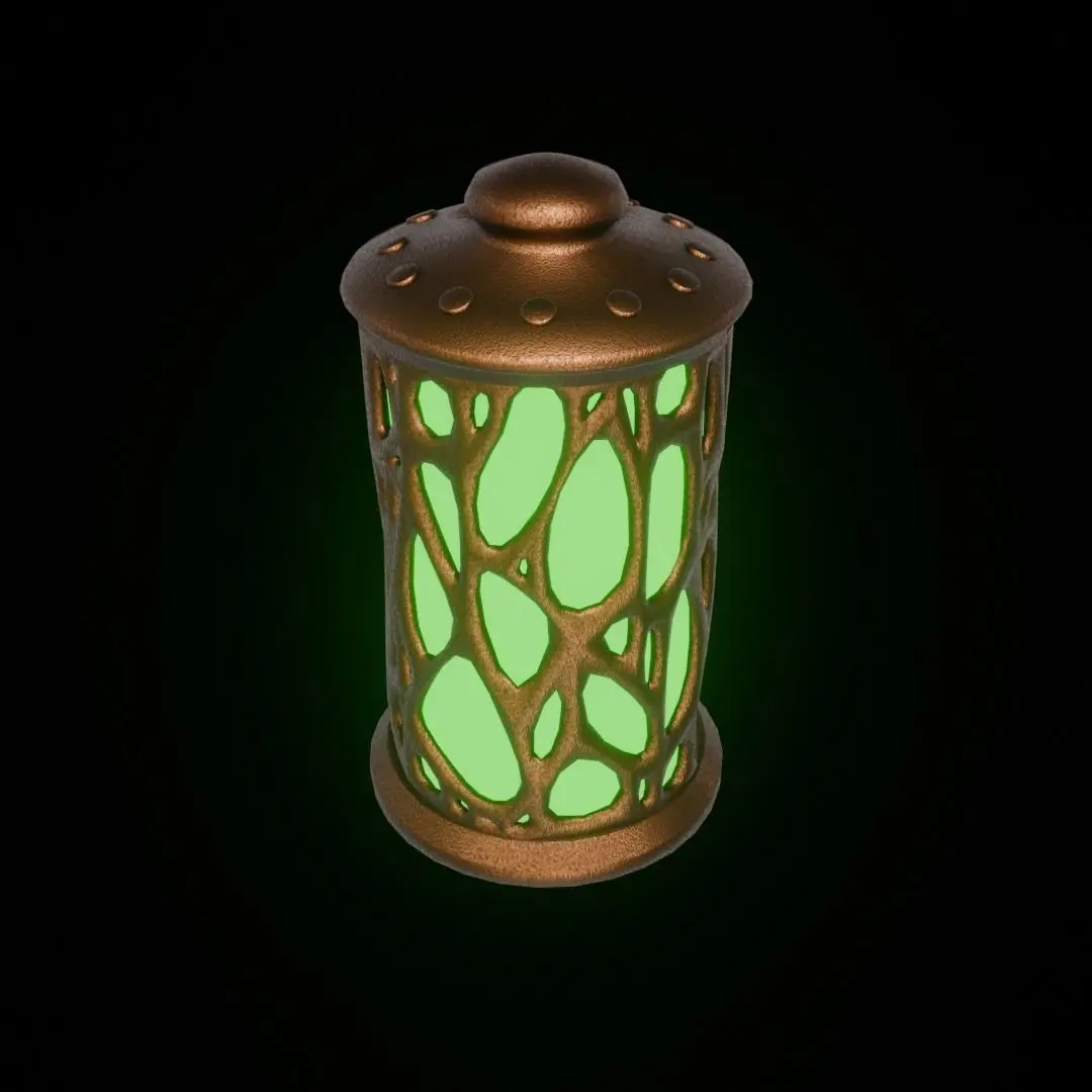 3d model of a fantastic lantern. The model has the base color, roughness, and environmental occlusion maps. It has the uvs unfolded. The statistics of the model are as follows: Vertices: 6174 Tris: 12524