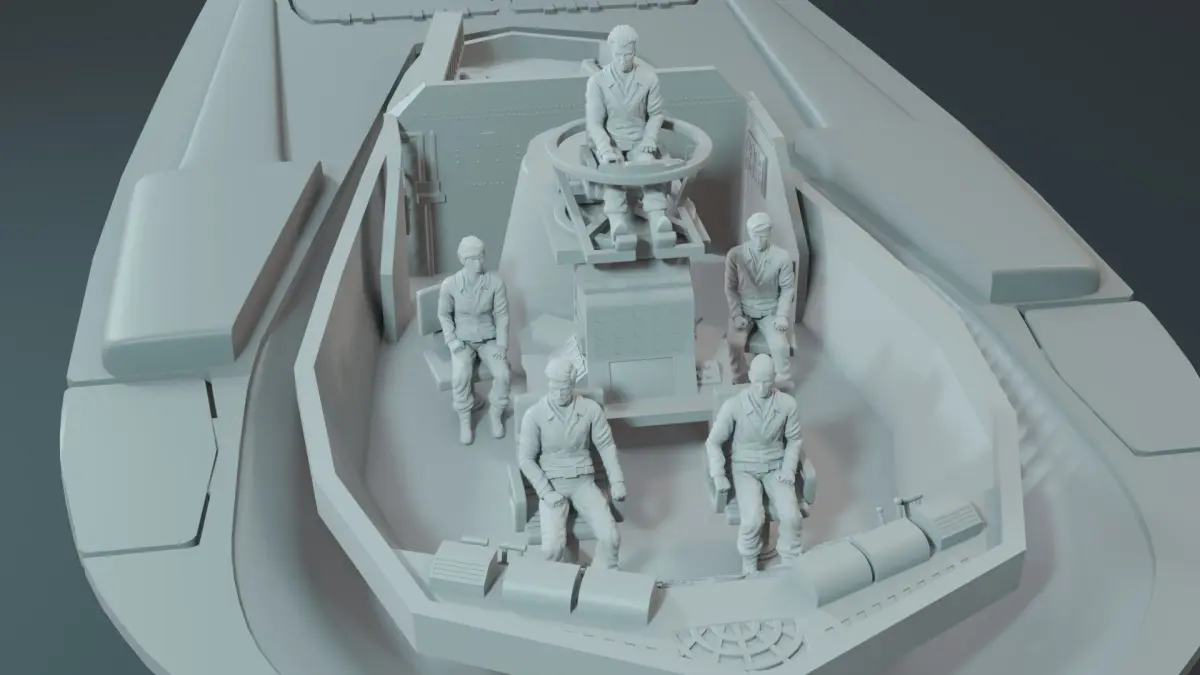 Standing figures about 2.25 inchesSeated (for a submarine) about 1 inchSubmarine length 10.3 inchesModels are tested and ready for 3D printing.