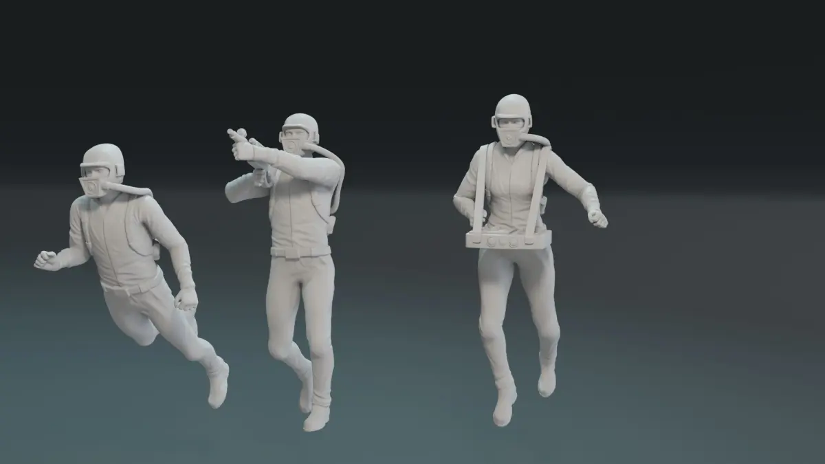 A set of models from the 1966 American sci-fi adventure film Fantastic Voyage.Classic lovers will be happy to have this set in their collection.The set includes the main characters of the film in three different forms: in a standing position, a sitting position, as well as in a floating and scuba gear.The set also includes the Proteus submarine. The submarine consists of different parts that connect (top, bottom, dome, interior and stand) Seated characters are also separate