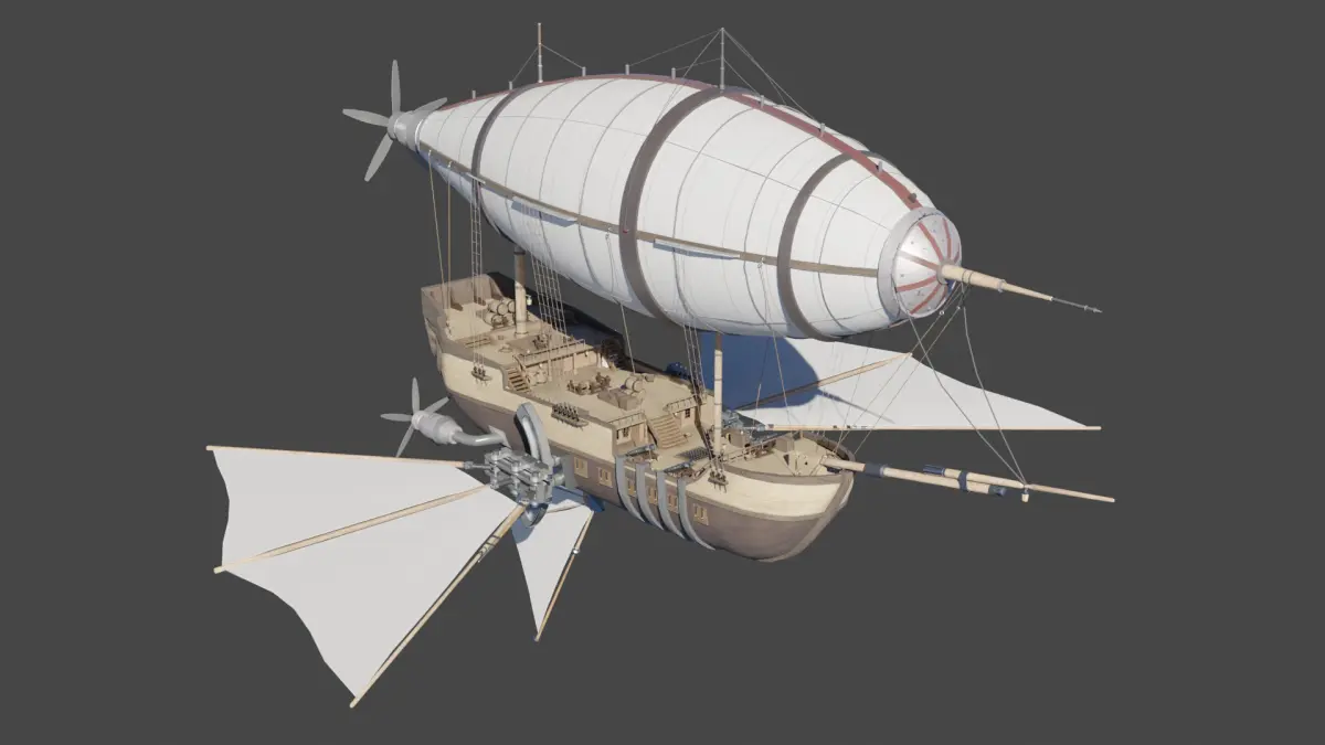 Airship contains 96 objects and 9 4K Textures (which includes furnishings). In the Blender file, the furniture can be disabled if desired. You also receive a 33 Furniture objects to use at your leisure for any of your works.There are two Blender files for the airship: