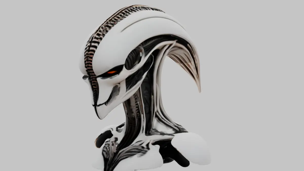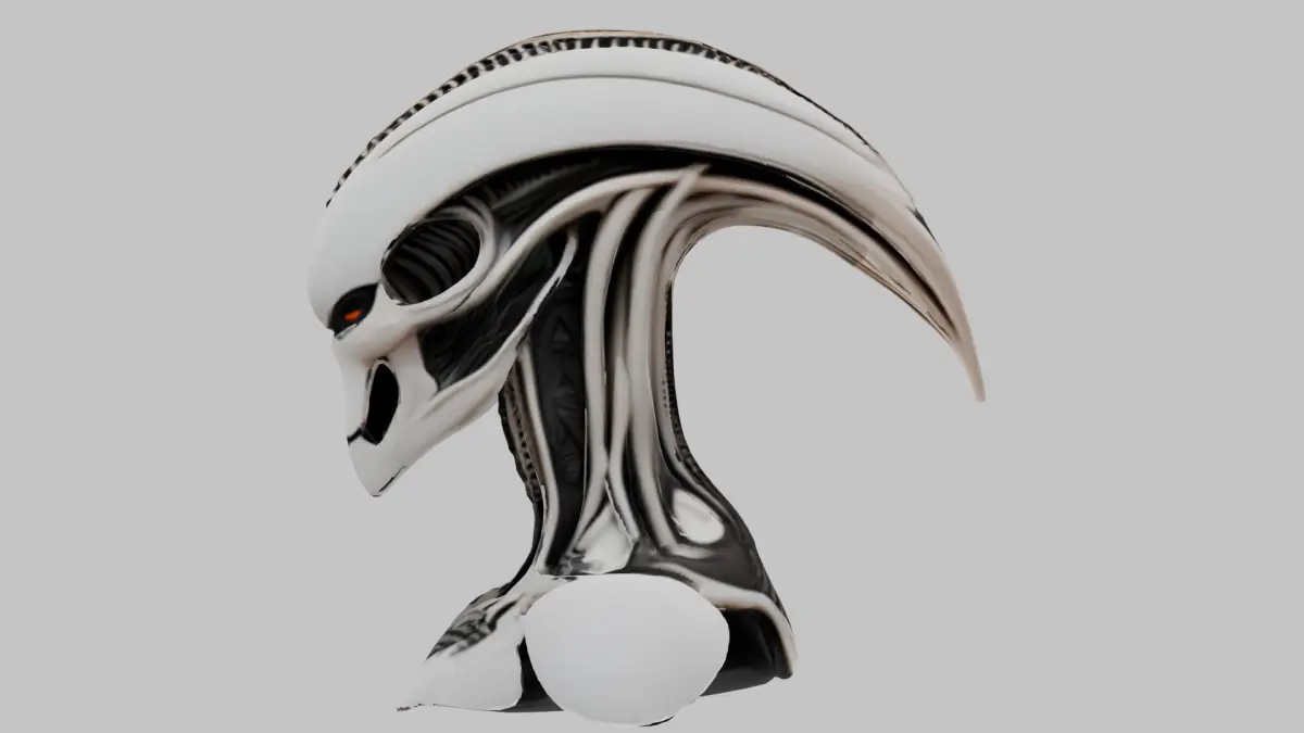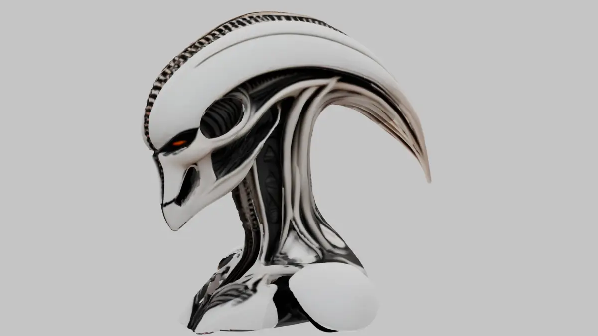 - This bust is a unique, stylized interpretation of an alien figure, blending H.R. Giger’s iconic biomechanical style with a modern low-poly art style.