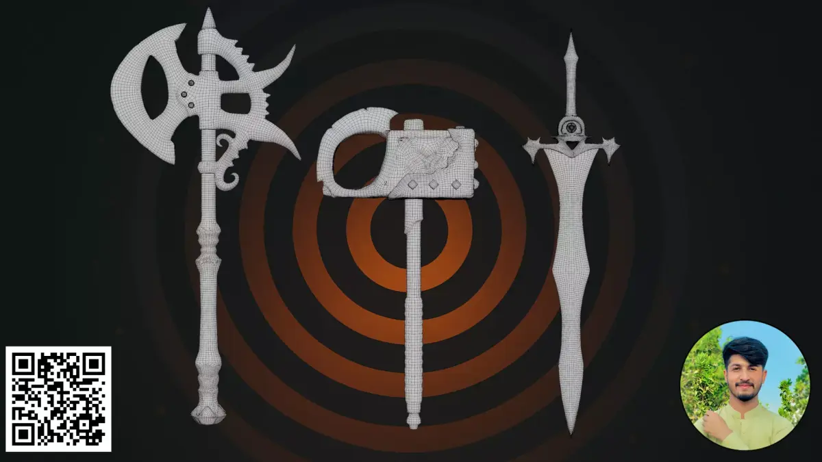 This is a high-quality 3D asset pack featuring three iconic heavy melee weapons: a Battle Axe, a War Hammer, and a Greatsword. Each weapon is designed with an ancient, battle-worn stone and metal aesthetic, perfect for high-end fantasy RPGs, soul-like games, and cinematic historical projects. The intricate engravings and heavy silhouettes make them ideal for boss-level characters or legendary loot.