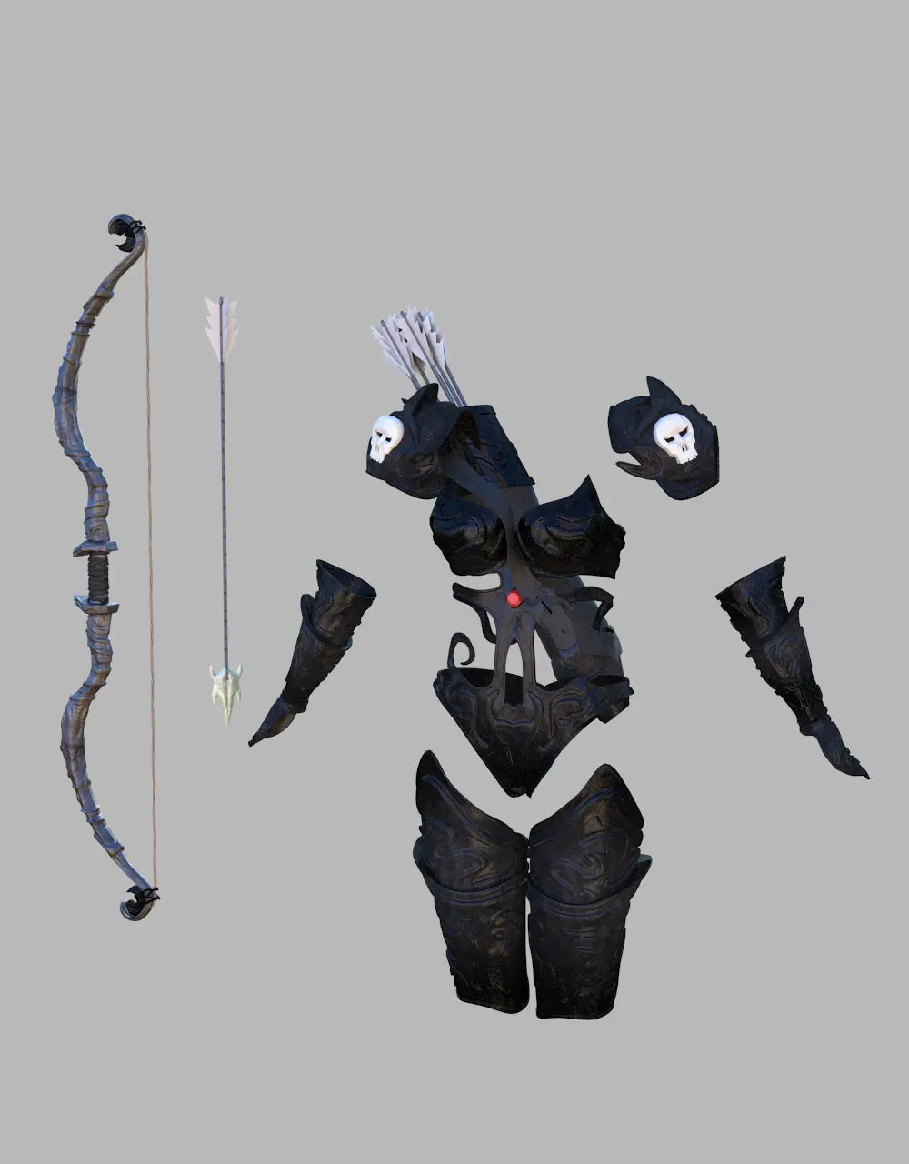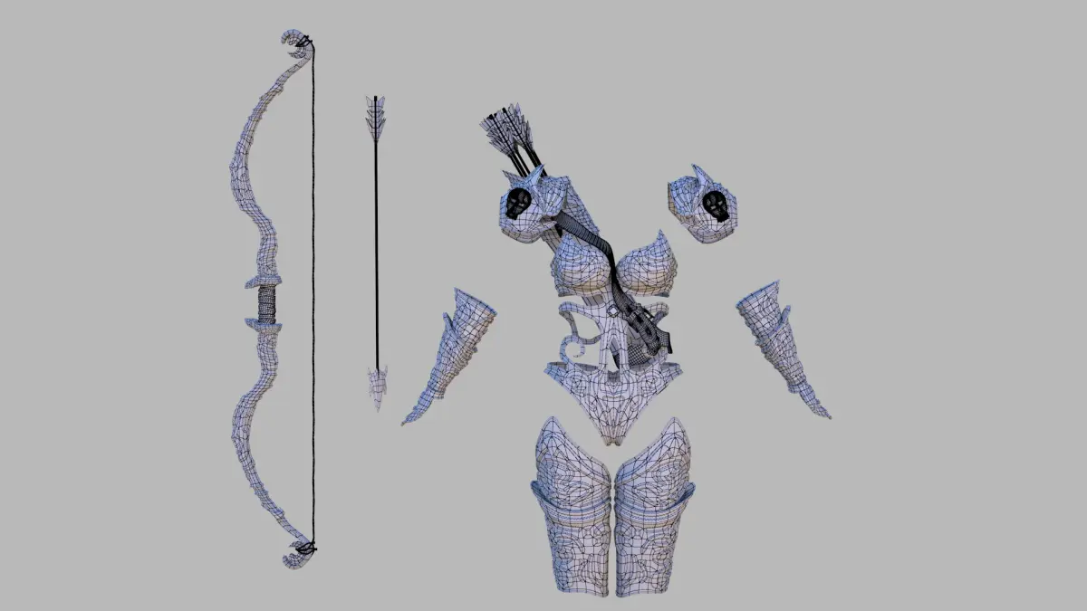 Model of Fantasy female archer armor. Base material on it - Including. Rendered with Vray 2.10.01.