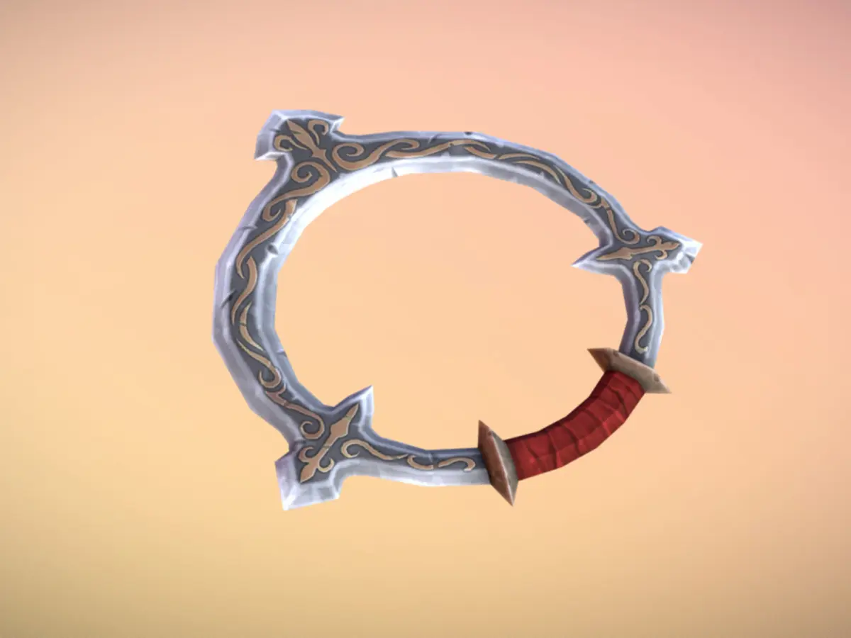 A low polygonal chakram with hand-painted style textures for game genres like MMORPG, strategy, third person, etc.