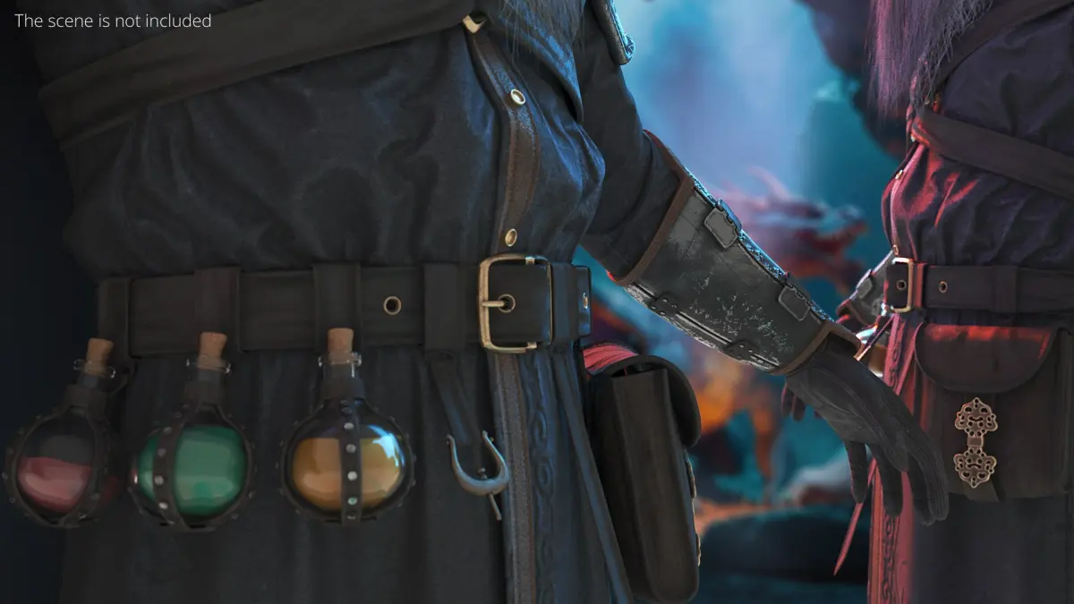 Fantasy Assassin Mage Outfit Full Body is a three-dimensional model of set of fantasy style, medieval themed clothes set, of fantasy style, medieval themed and evil magician.