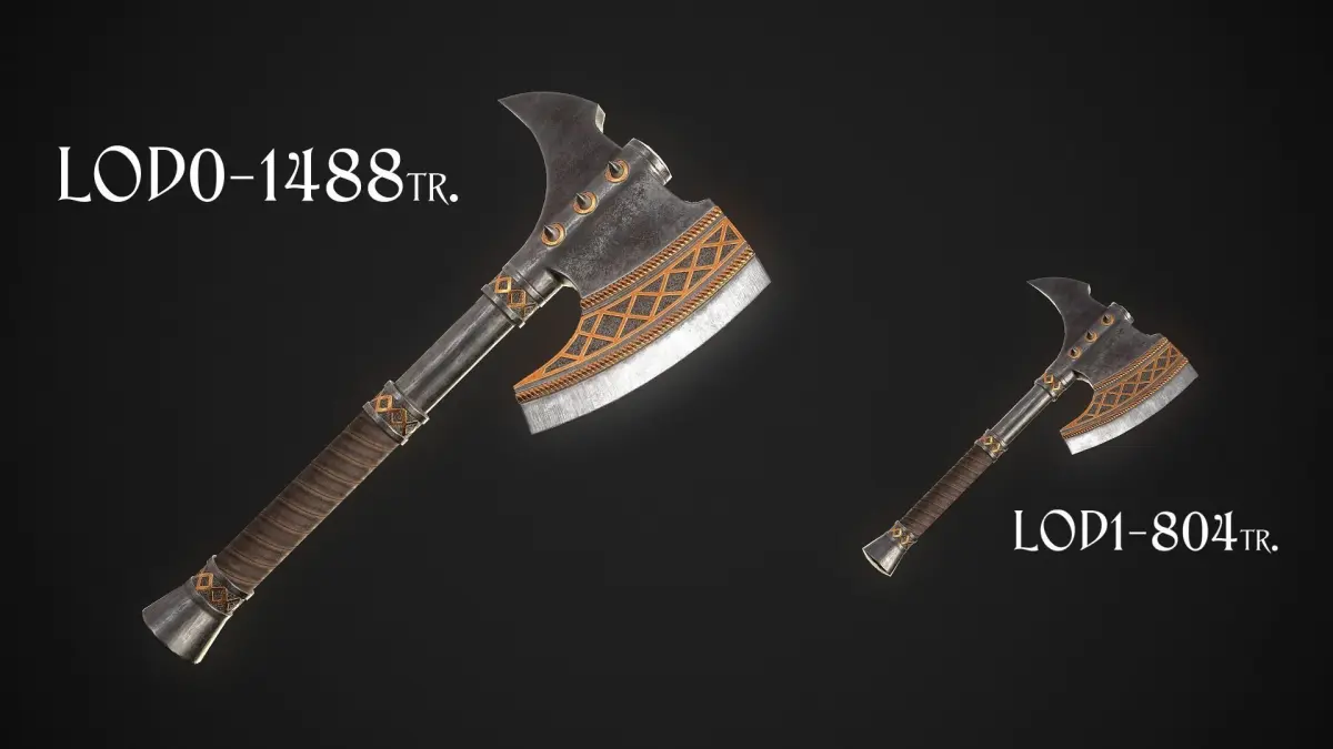 FantasyAxe2A: LOD0 - 1488tr., LOD1 - 804tr.