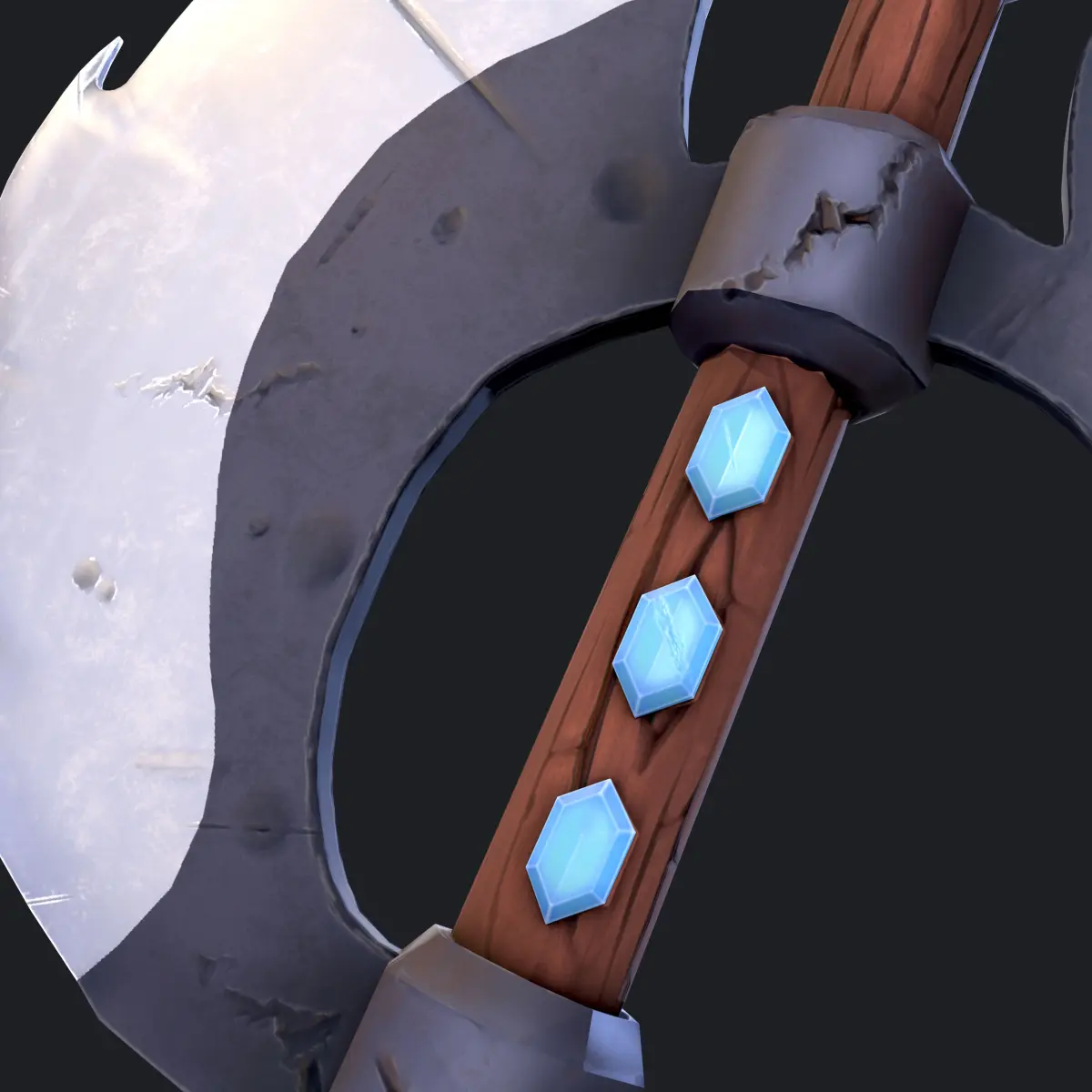 I'm in love with the details on the cutting edge of this stylized axe, just looks so right in this style.Plus the texture and the colors palette, they work together so well. Hope you like it !