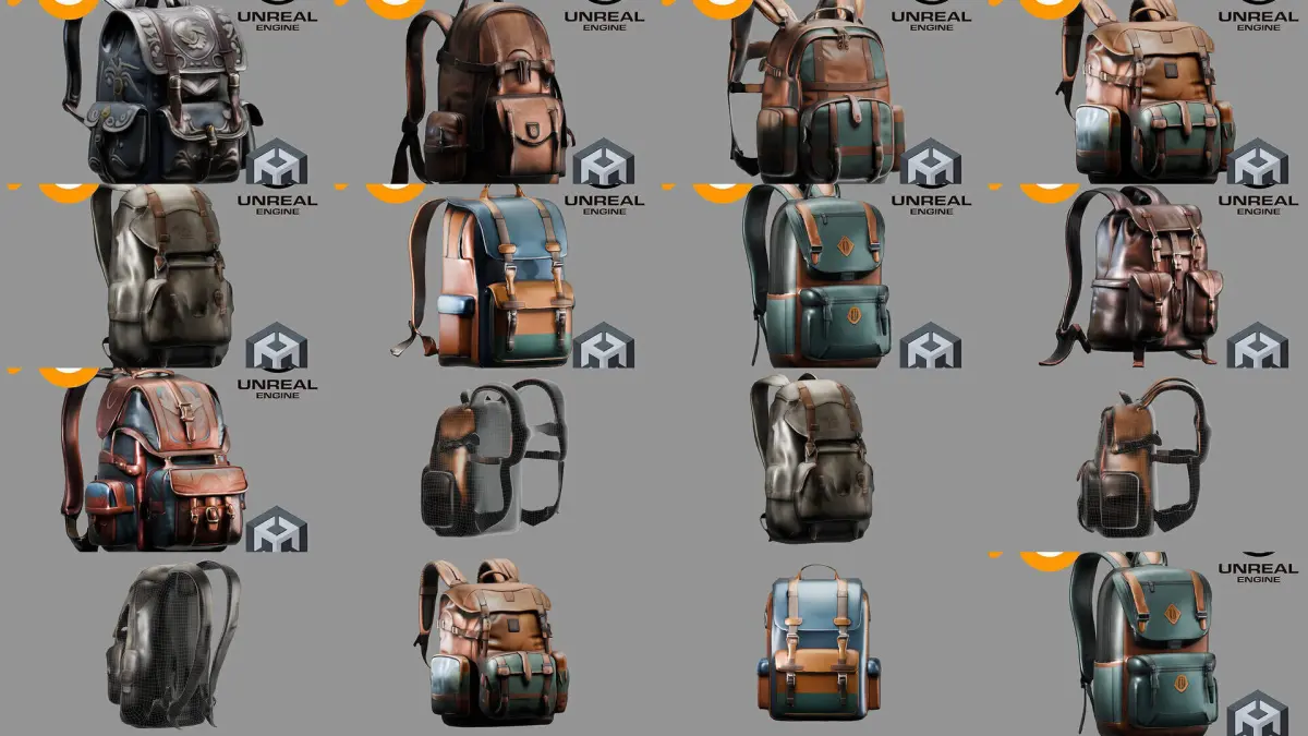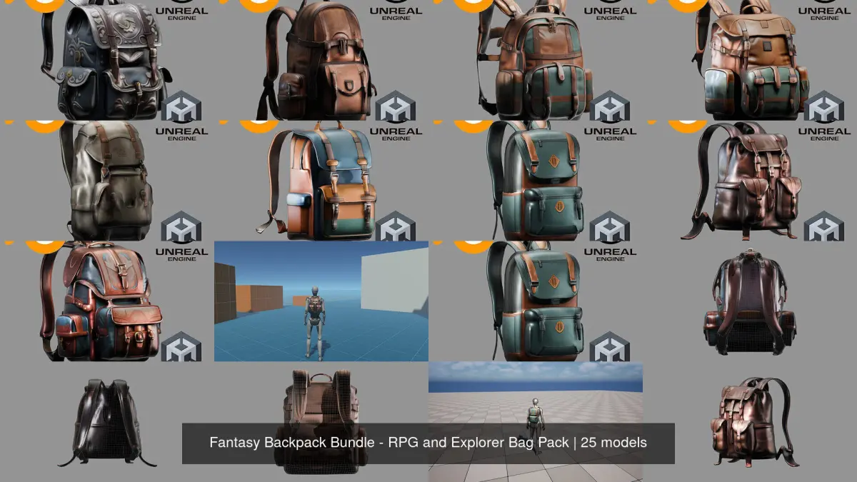 This stylized fantasy backpack collection includes magical and medieval-inspired designs for adventurers, travelers, and RPG characters. Ideal for stylized or hand-painted fantasy games. Includes unique designs like potion-holder packs, scroll bags, and enchanted gear sacks.
