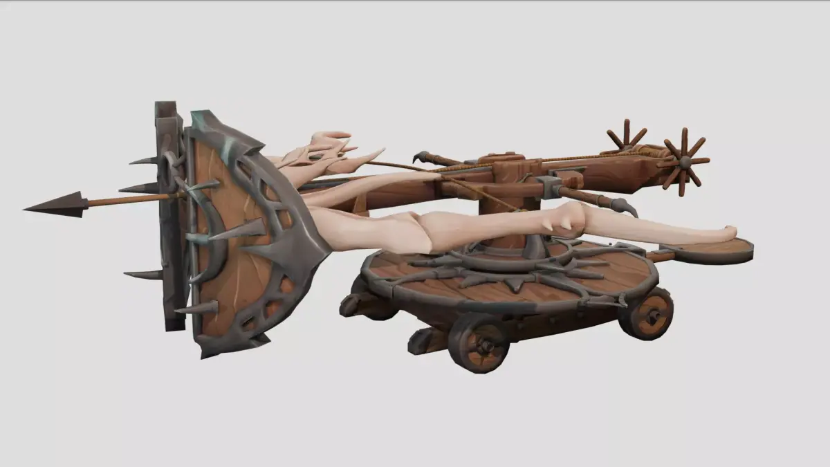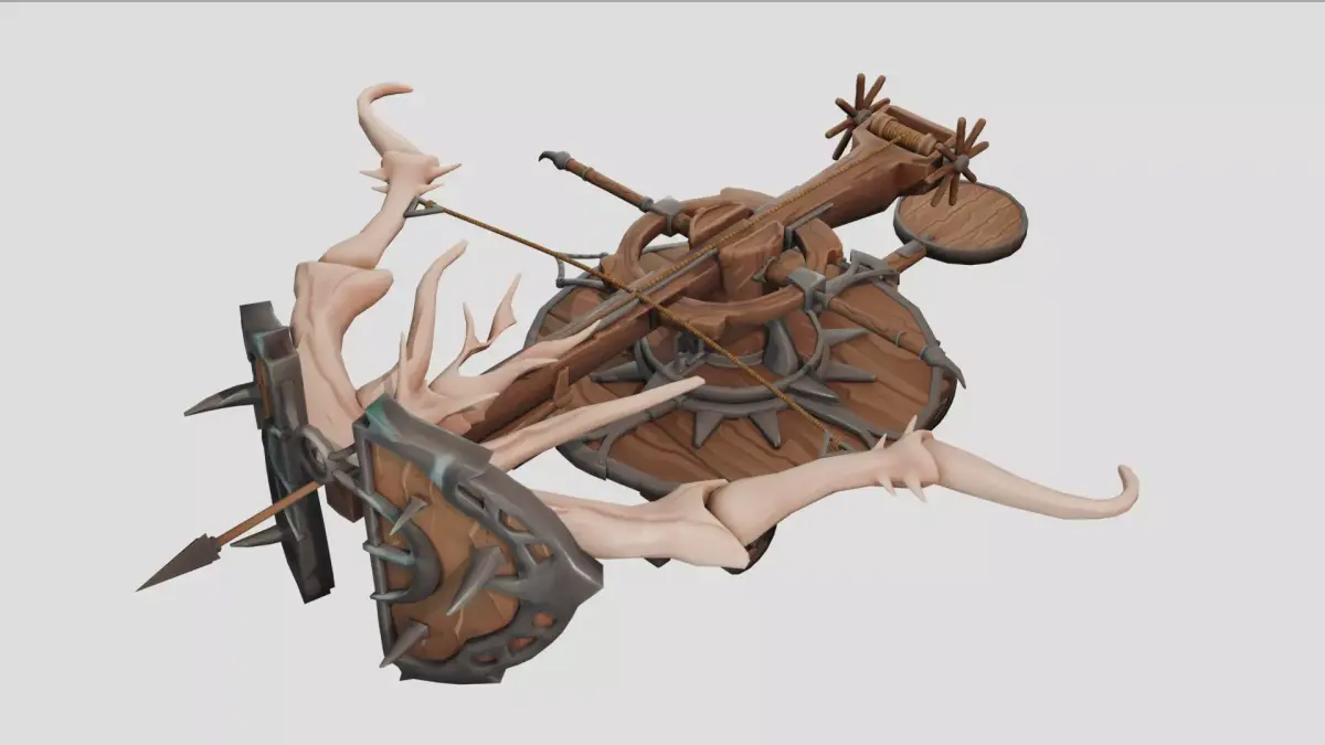 This is a stylized 3D model of a fantasy ballista, designed for real-time rendering and game engines.It combines hand-painted details with PBR materials to achieve a hybrid look — both painterly and physically accurate — perfect for fantasy or medieval environments.
