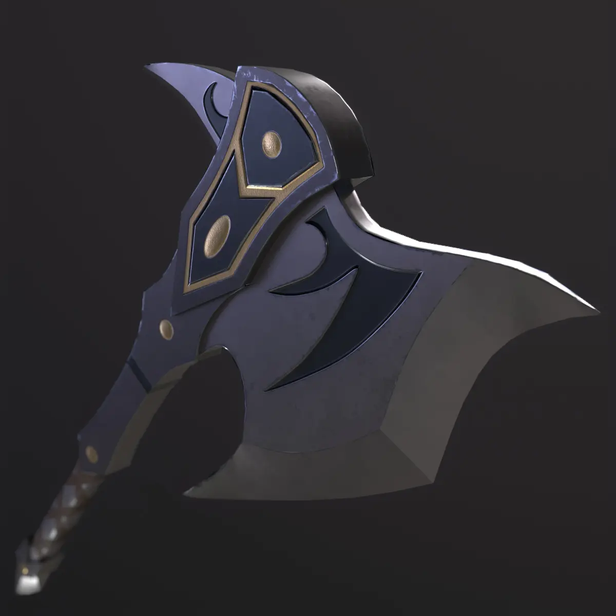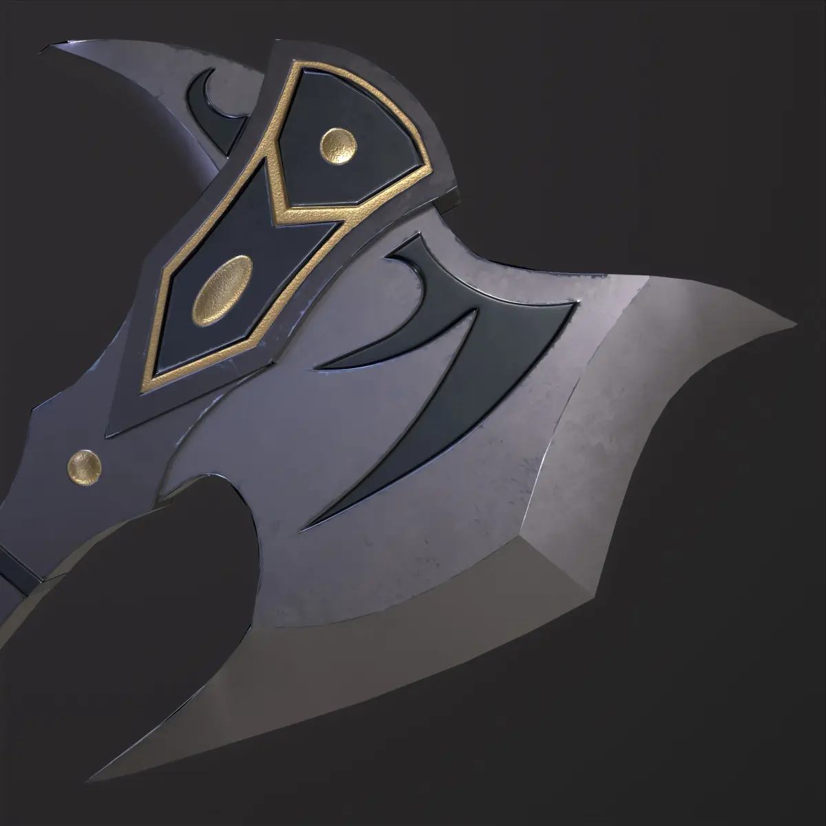 Low-Poly Fantasy Battle Axe PBR with gold elements and patterns