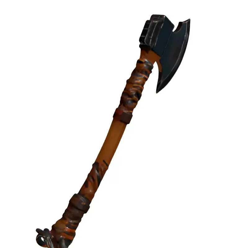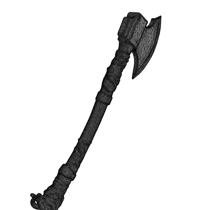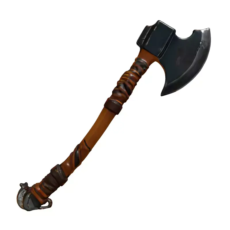 This is a meticulously crafted 3D model of a fantasy or medieval-inspired battle-axe, designed with a robust and weathered aesthetic ideal for immersive virtual environments. The axe head is forged from dark, aged metal, featuring a sharp, battle-worn blade, and is firmly secured to a sturdy wooden shaft. The handle is intricately wrapped with authentic-looking leather straps, providing a realistic and comfortable grip for any virtual warrior. This versatile asset is perfect for integration into video games, especially RPGs, action-adventure titles, or fantasy-themed projects, serving effectively as a primary character weapon or an atmospheric environmental prop. It is also well-suited for architectural visualizations requiring a historic or rustic touch, cutting-edge augmented reality (AR) applications, engaging virtual reality (VR) experiences, and compelling digital art compositions. Its detailed construction ensures suitability for animations and cinematic renders. The model is provided in widely compatible formats, including GLB, OBJ, STL, ABC, DAE, FBX, USD, and PLY, ensuring seamless import into most 3D software and game engines. It is rigorously optimized for real-time applications such as game development and AR/VR, guaranteeing efficient performance without sacrificing visual fidelity. The model also maintains sufficient detail for high-quality static renderings and pre-rendered scenes. Key features include a clean, optimized topology for efficient rendering, full UV unwrapping with no overlapping UVs for precise texturing, and high-resolution PBR textures (Albedo, Normal, Roughness, Metalness, AO) that deliver realistic material representations and surface details, ensuring it looks exceptional in any lighting setup. This asset is ready for immediate use, requiring minimal setup to enhance your project.