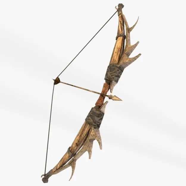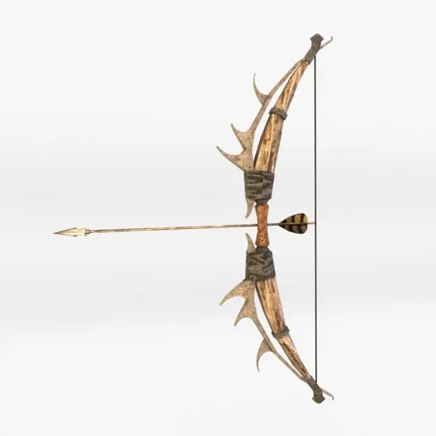 Fantasy bow with arrows. Perfect for games, locations, renders or scene elements.