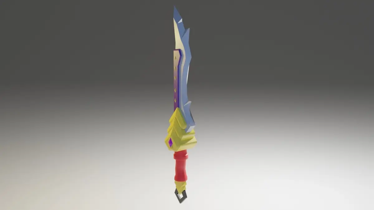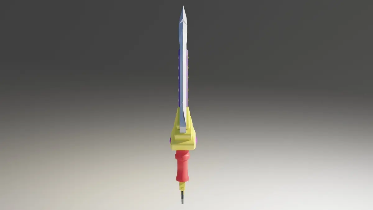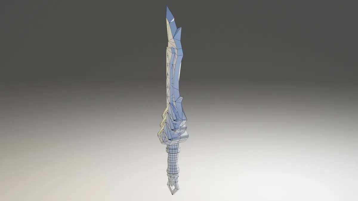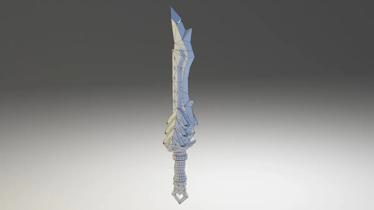 Low poly model of a cartoon fantasy sword in which there is a uv-scan, materials.