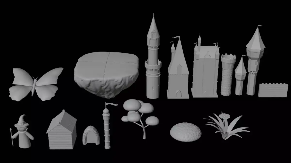 Big TowerBuilding_01Building_02BushButterflyButterfly Wing_01Butterfly Wing_02Defense Tower_01Defense Tower_02Defense Tower_03DoorFloating Island_01Floating Island_02Floating Island_03Floating Island_04FlowerHouse Side TowerHouseMagicianTree_01Wall