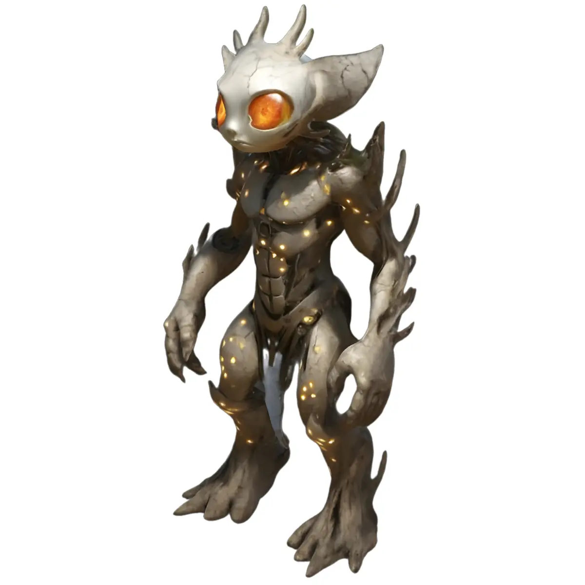 - Crystalline Being - A small but detailed creature with sharp geometric elements and glowing accents, featuring a white-gray color scheme with orange highlights.