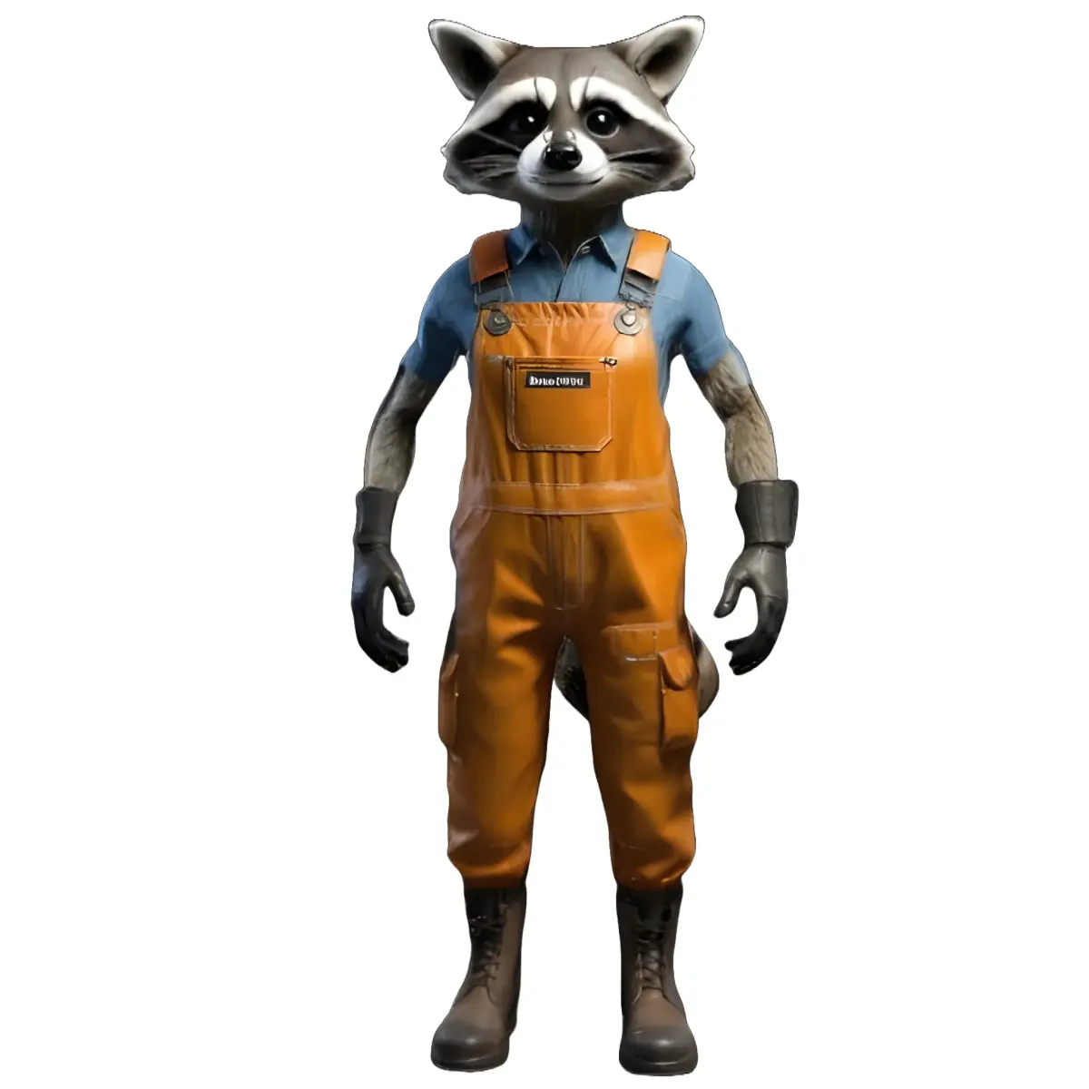 - Workshop Raccoon - A charming anthropomorphic raccoon wearing orange overalls and a blue shirt, perfect for industrial or steampunk settings. The design features detailed texturing on the fur and fabric.